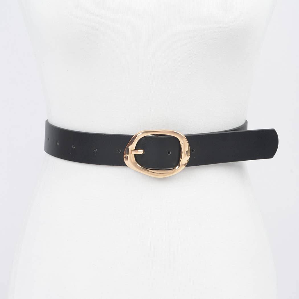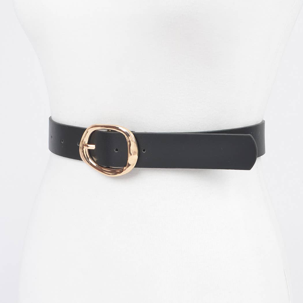 * Faux Leather Metal Buckle Belt * POLYURETHANE * APPROX. WIDTH:1.25".LENGTH:43.5"