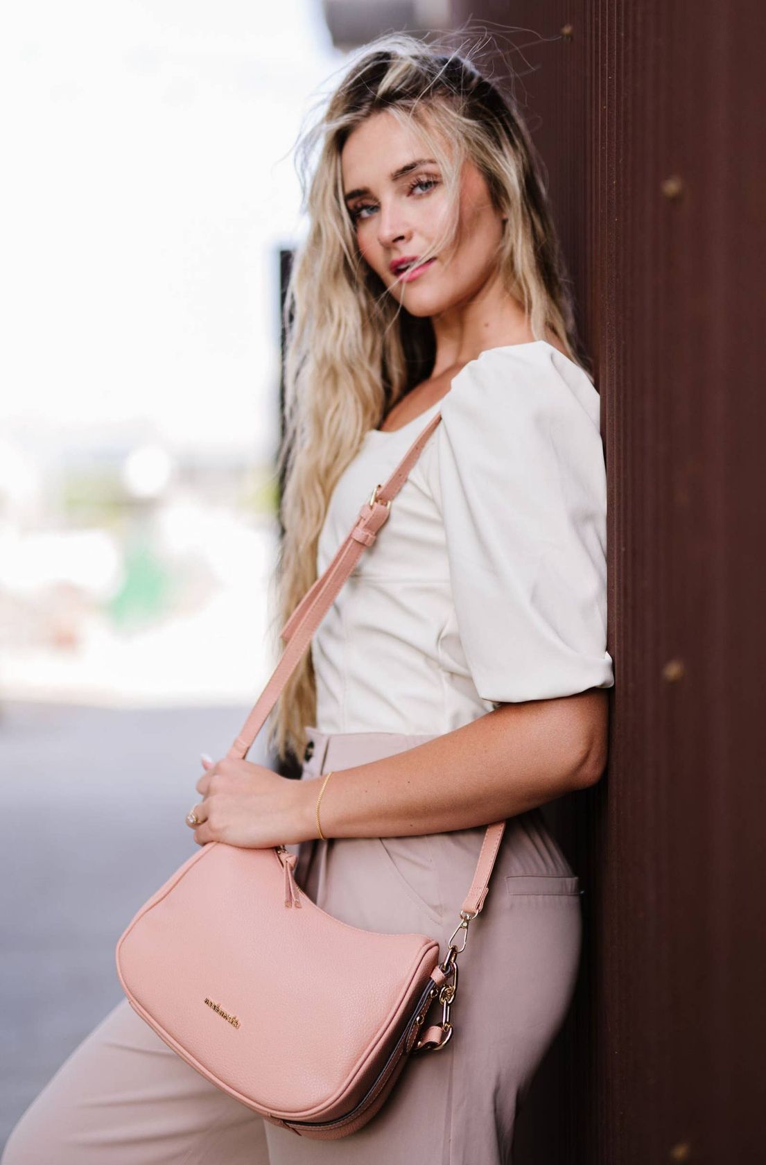 Elevate your ensemble with the Ashton Crossbody! With its luxe, lightly pebbled vegan leather body and glossy gold hardware, this stunning saddle bag is the perfect piece to take your outfit to the next level. Wear it on your arm with gold chain and vegan leather handle or add the adjustable vegan leather strap for crossbody wear. The Ashton is well-suited to whatever your day demands.
