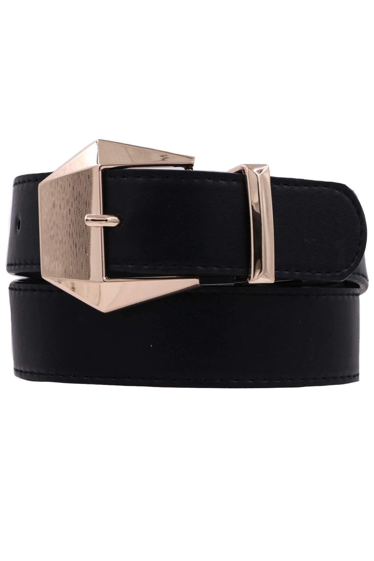 Geometric faux leather buckle belt available in Black or White. Perfect accessory for any outfit!