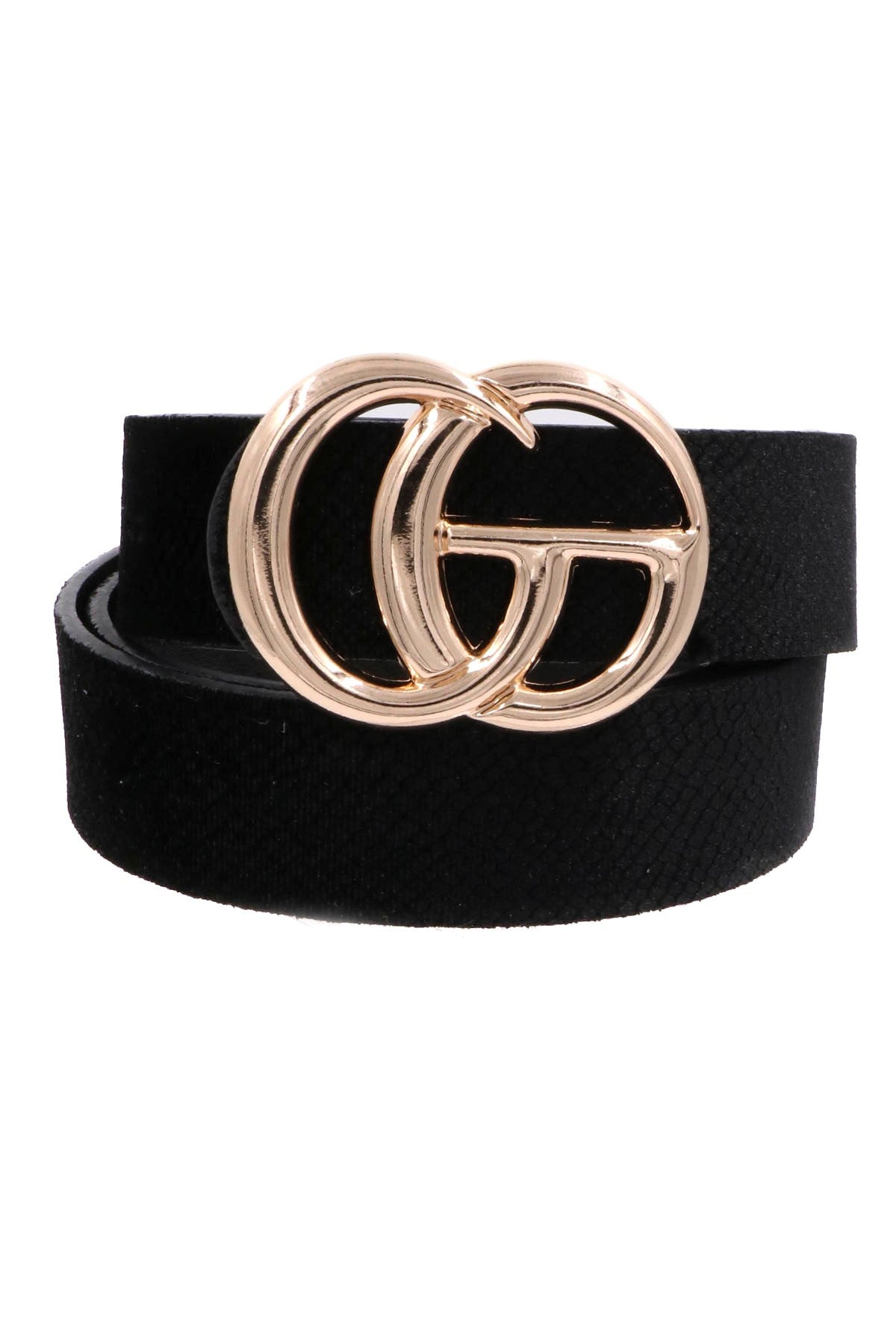 Faux leather or fur metal ring buckle belt. One size.