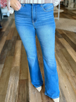 The Sarah High-Rise Wide Leg Jeans – Medium Wash Stretch Denim, 33" Inseam