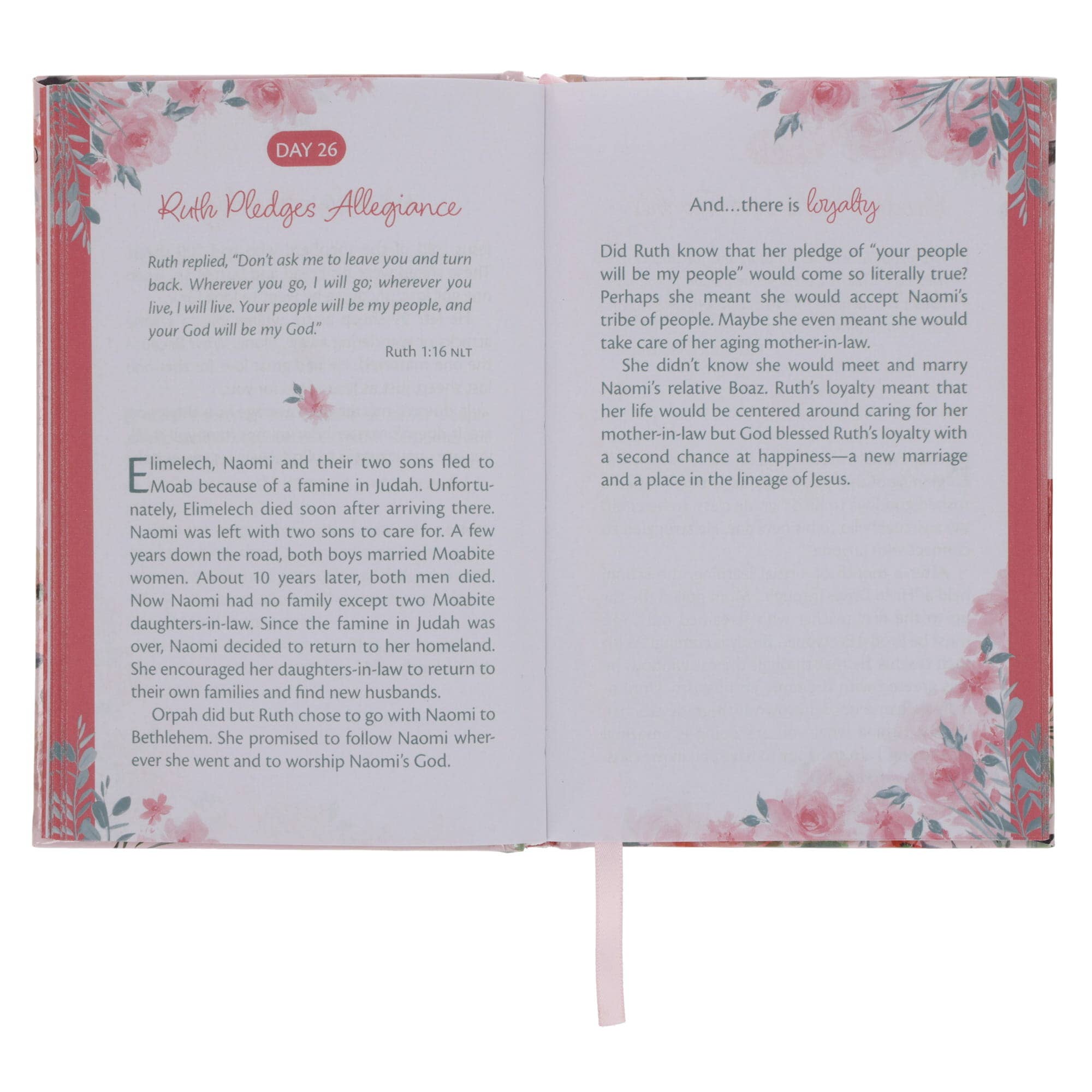 Full-color floral cover design, Pink-foiled accents, Pink foil accents and black-lettered title hardcover, Two-color interior, Satin ribbon marker, 188 foil-edged pages, 90 devotions, Size: 7.2" x 4.8" x 0.4" 188 x 122 x 10mm)