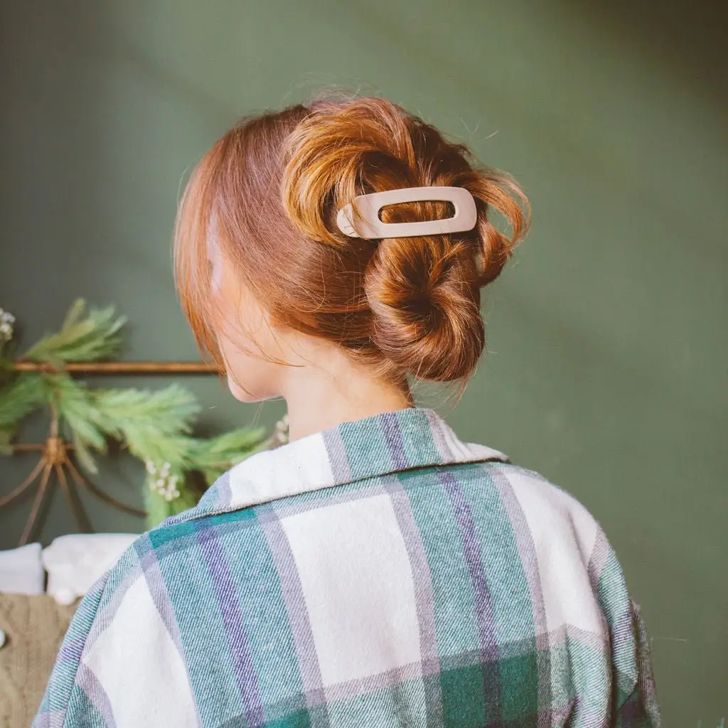These flat claw clips are so convenient and comfortable. They feature a large claw, that lays flat on your head for optimal comfort while driving, lounging or just going about your day. These clips can be stacked for a beautiful layered look, or can be worn alone. They are strong and large enough to hold all your hair whether it's thick or thin, and it won't leave your hair kinked or creased.