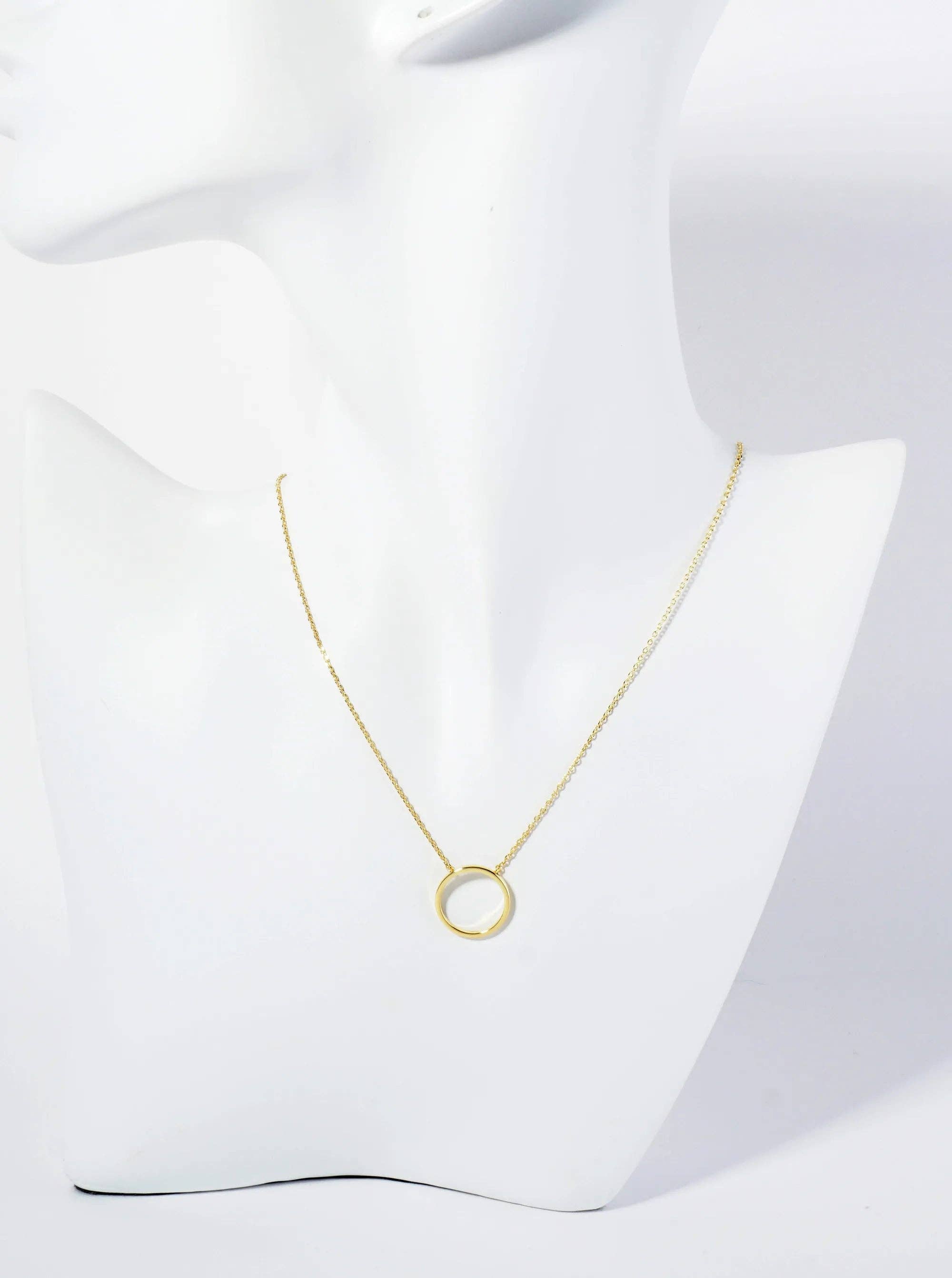 Slip this sleek circle pendant into your rotation and watch it become your go-to accessory for literally everything. Whether you're rocking jeans and a tee or getting dressed up for date night, this minimalist beauty plays well with others—no drama, no fuss. The 18K gold dip adds just enough polish to elevate any look without trying too hard. Simple enough for everyday wear, sophisticated enough to steal the show when you want it to.