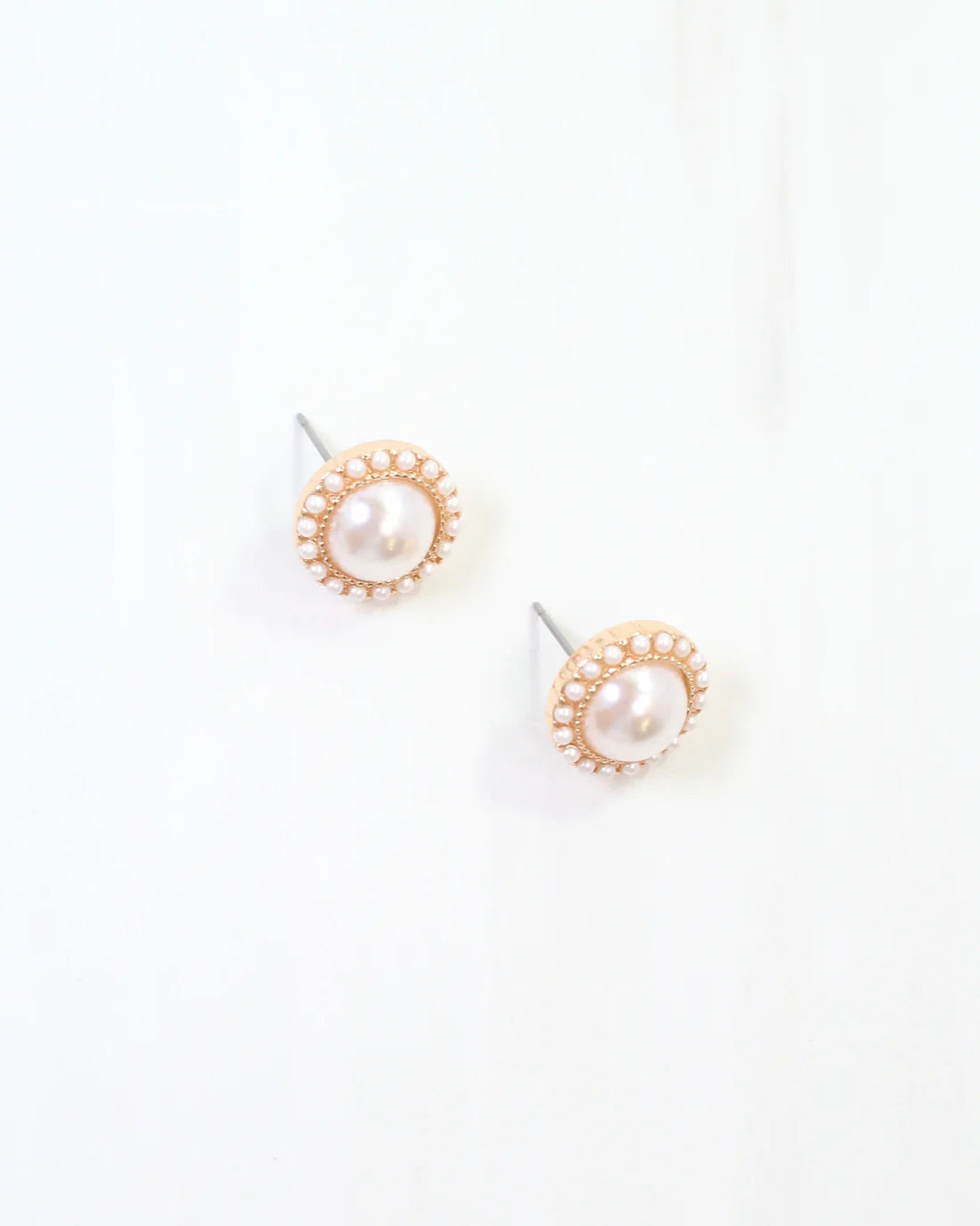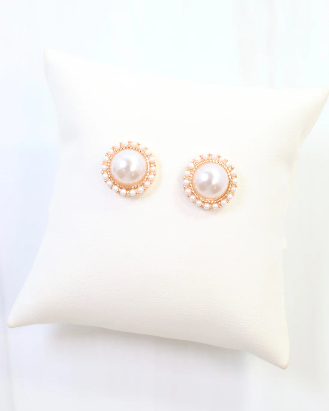 Elevate your look with the Alvaro Pearl Stud Earring Ivory. This elegant piece features a classic ivory pearl center, delicately framed by a ring of tiny pearls for a refined and fashionable touch. Perfect for adding subtle sophistication to any outfit, it balances timeless beauty with a modern edge.