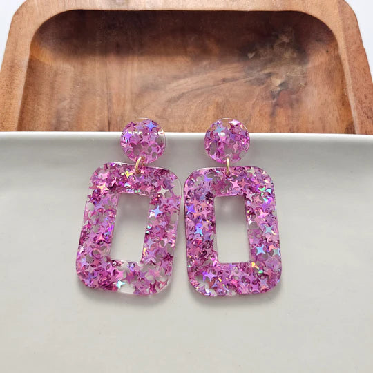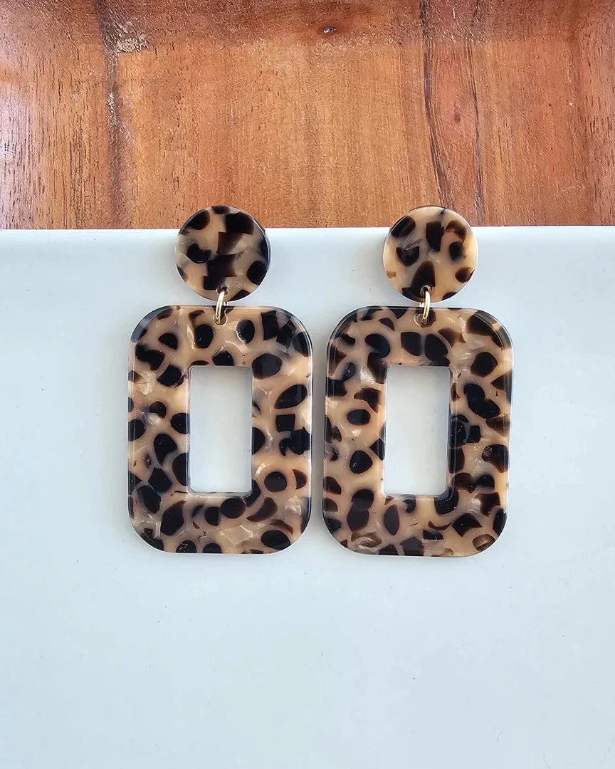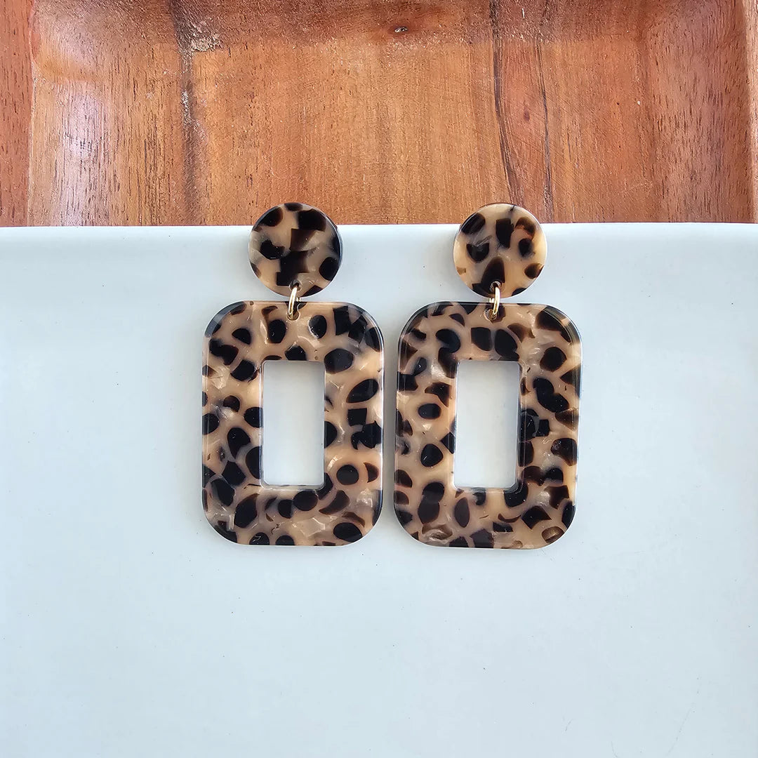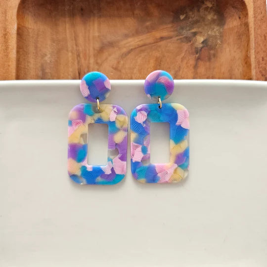 The acrylic rectangle earrings add contemporary style to any outfit, while the matching posts and charms will make you feel effortlessly chic.Hypoallergenic stainless steel posts