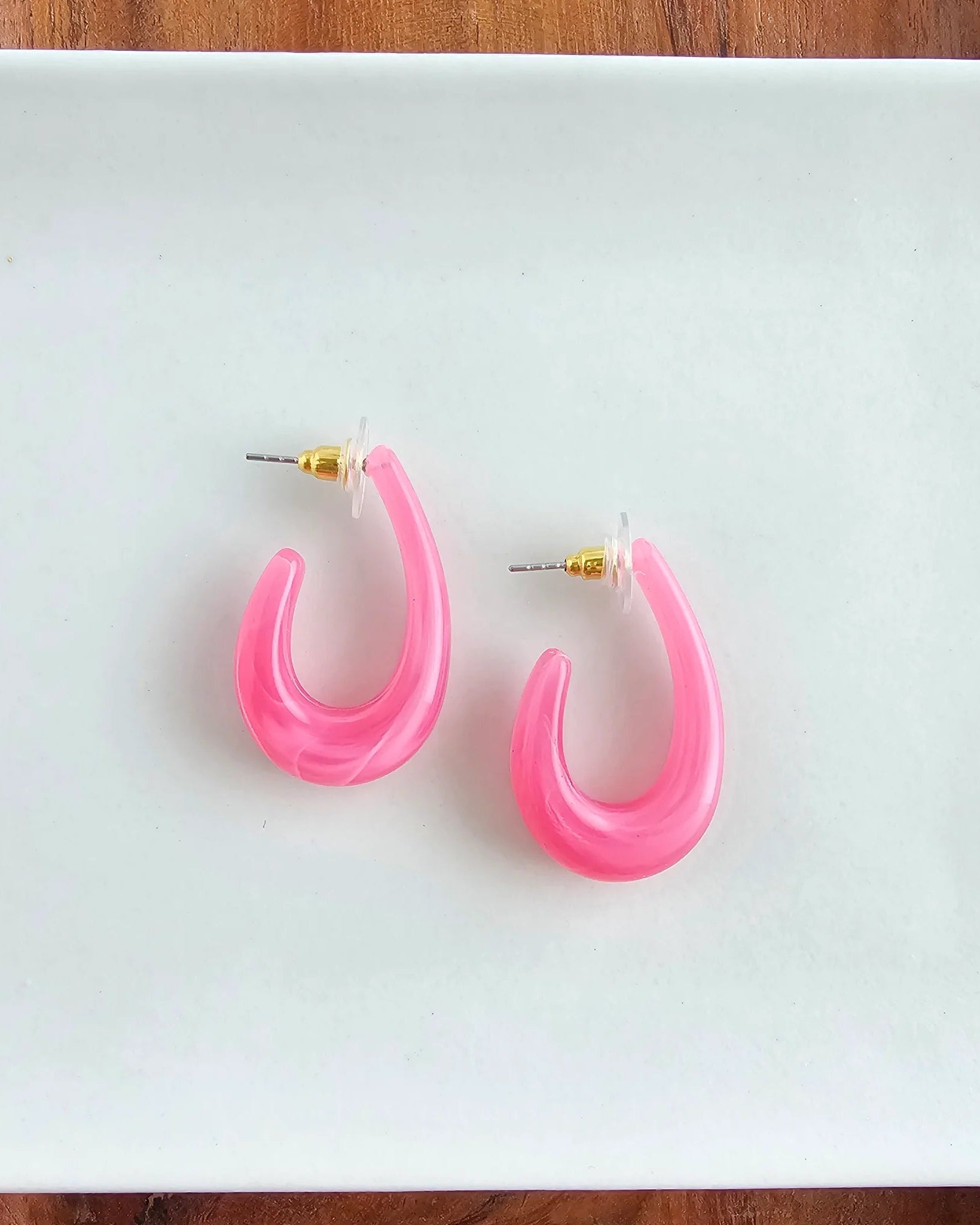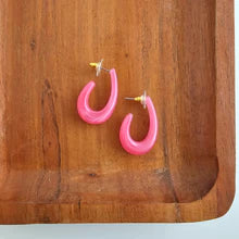 Add a splash of vintage-inspired charm to your jewelry box with our Julie Hoops. These earrings feature a bold, curved silhouette crafted from a chunky, retro resin that captures a playful spirit. Designed to make a statement all day long.