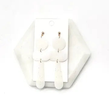 These earrings are stunners, photos don't do them justice! With the modern shape, the glittery acrylic makes these eye catchers! See video for best view of the material Made with nickel free posts, they measure around 3.5 inches total