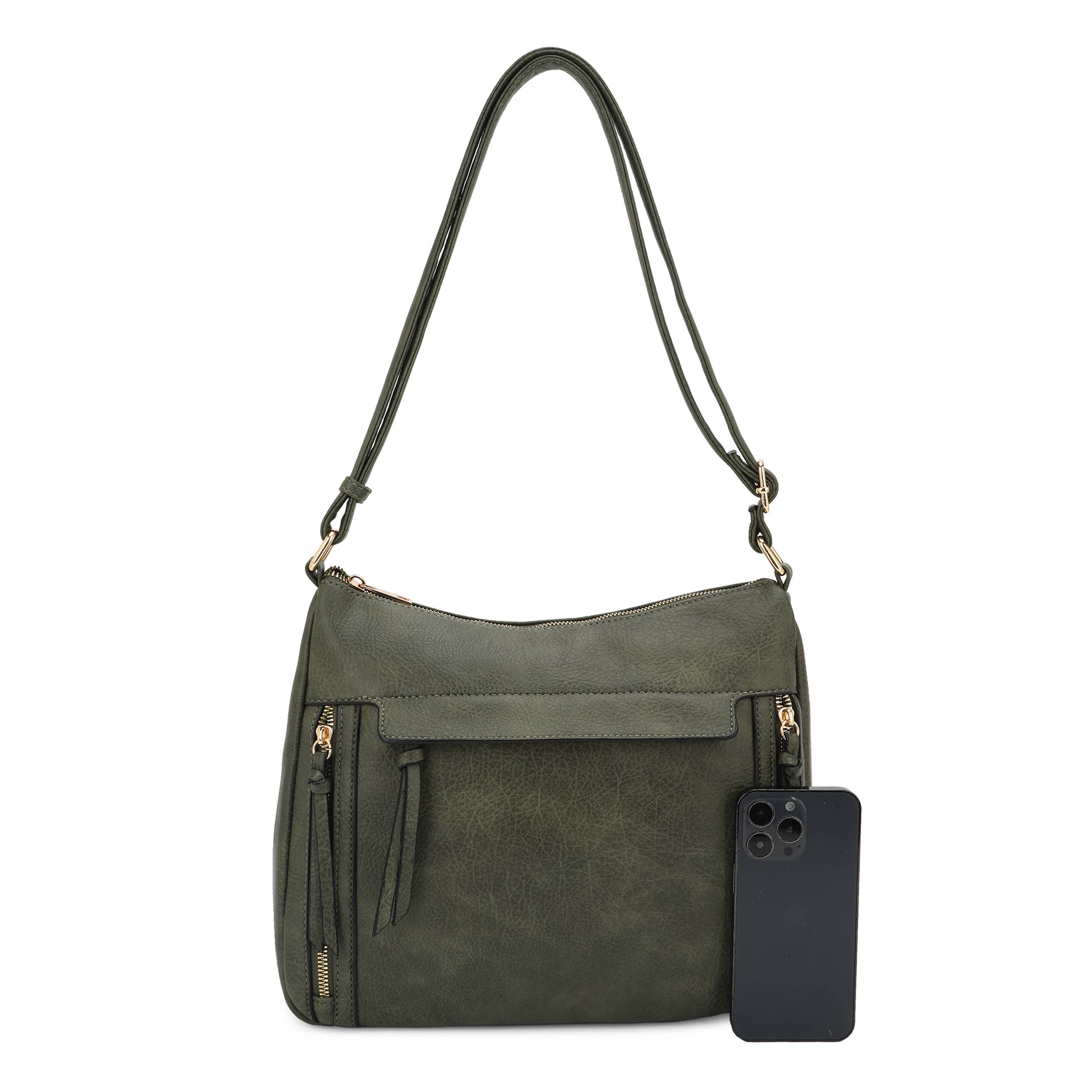 The Clara Women Multi Pocket Slouchy Crossbody Bag offers a blend of practicality and style, made from high-quality PU vegan leather with soft and distressed texture.