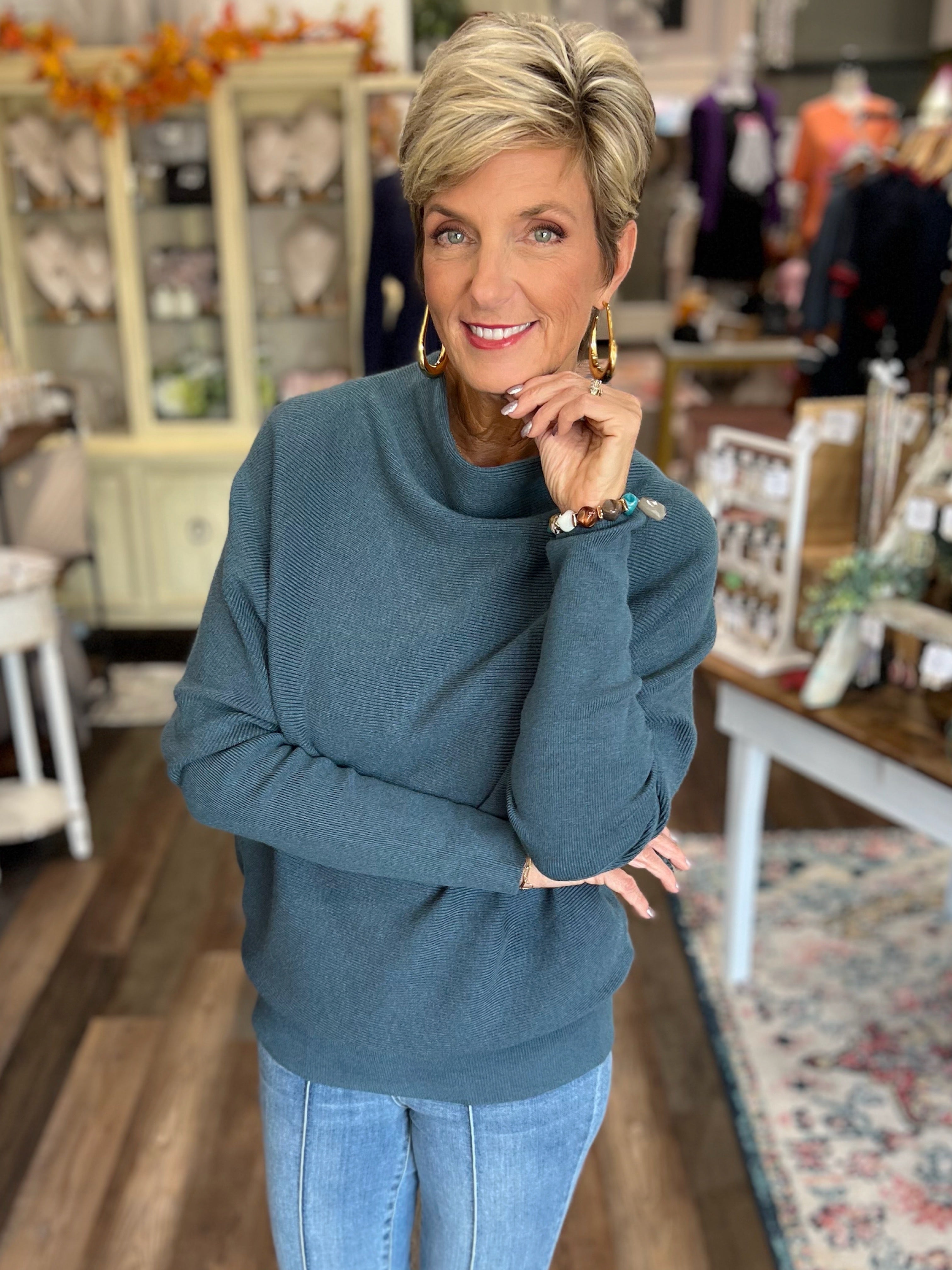 Wrap yourself in effortless style with our Cowlneck Knit Pullover, available in two timeless shades—teal and cream. Designed with a relaxed, oversized fit, this pullover offers ultimate comfort while still looking chic. The soft knit fabric and draped turtleneck neckline bring a cozy, elevated vibe that’s perfect for cooler days.