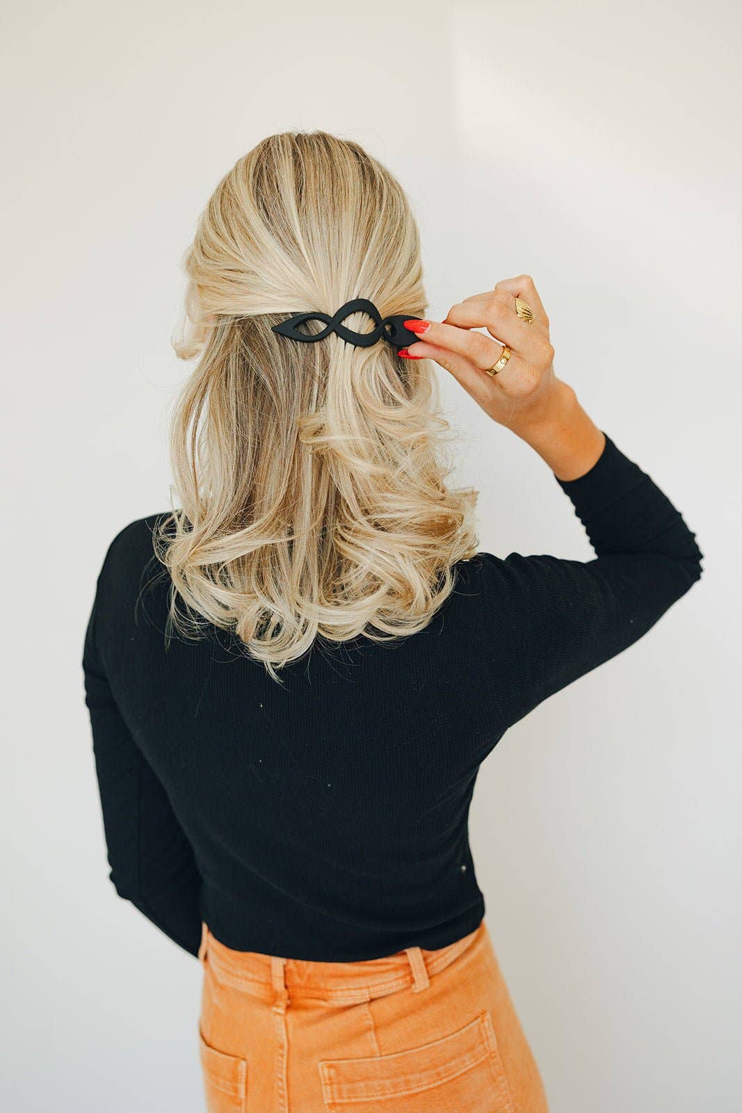 These alligator claw clips are to die for, and are so unique! Different from our normal alligators, they have a fun and chic infinity loop style. How often can you find an accessory that is unique and cute but also, so incredibly practical? These clips pass every headrest or movie theater chair test! Wear it everyday around the house, during your workouts, to work, or for your next girls night, it'll always match the vibe. They are 4.5 inches long.