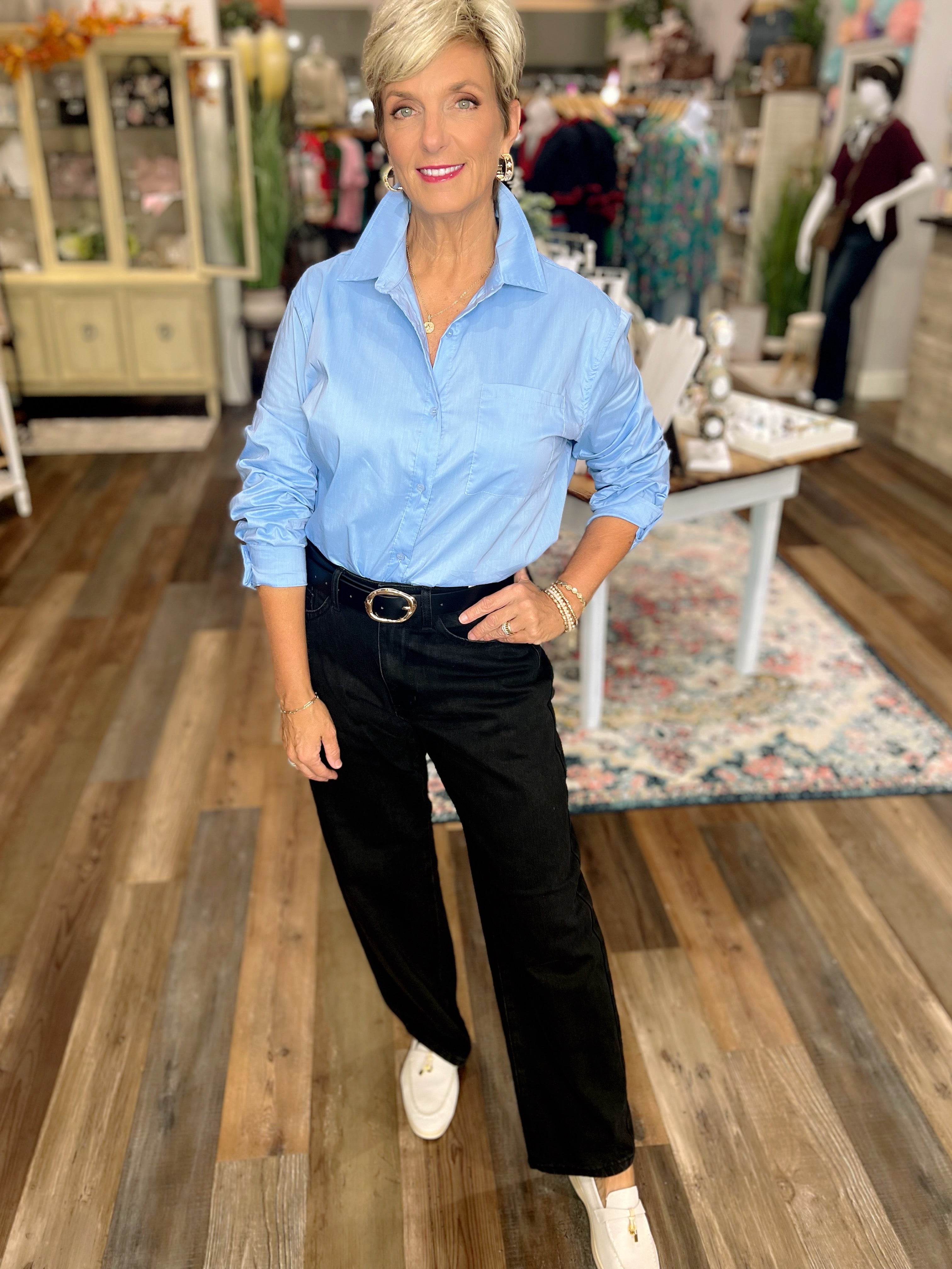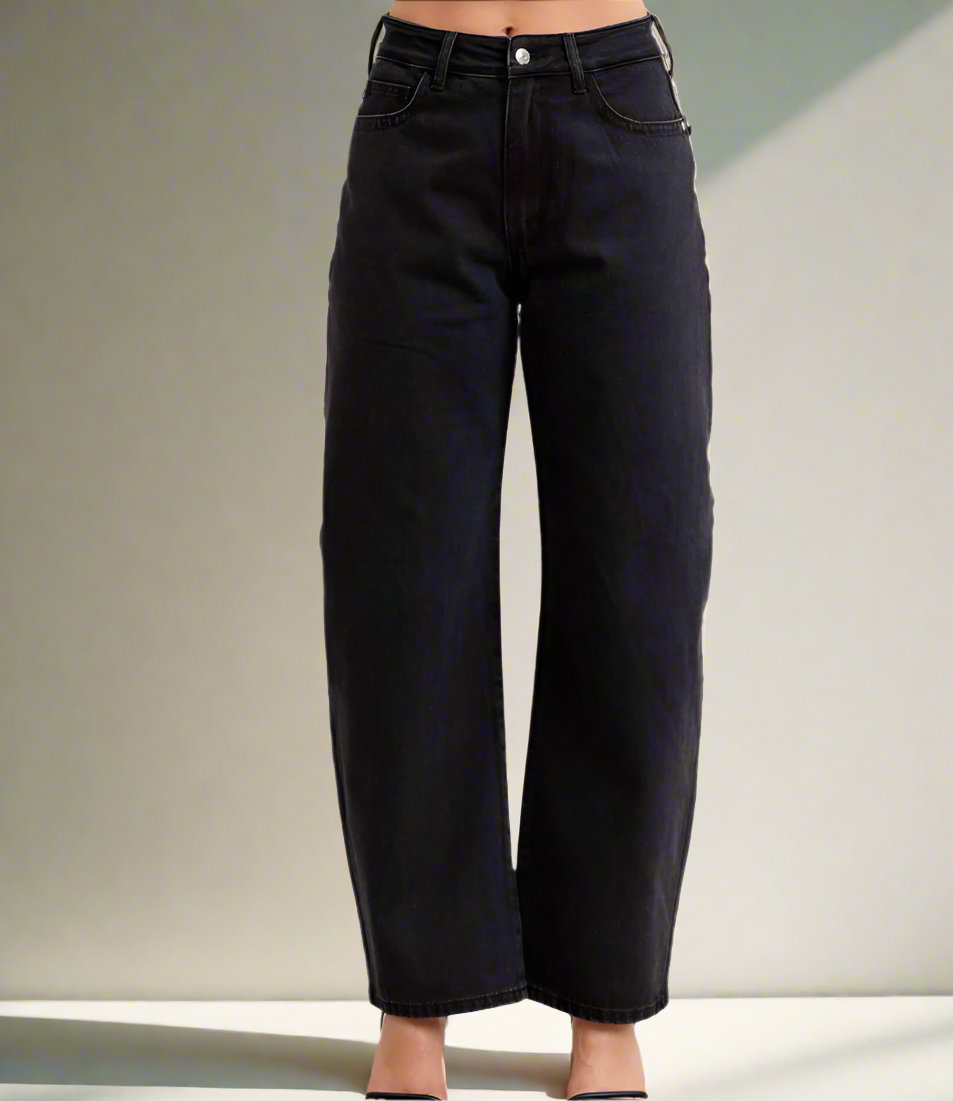 Pair with a structured blazer and loafers for an elevated workwear vibe, or keep it casual with sneakers and a tucked-in tee. Add a statement belt to highlight the high rise and finish your look with confidence.