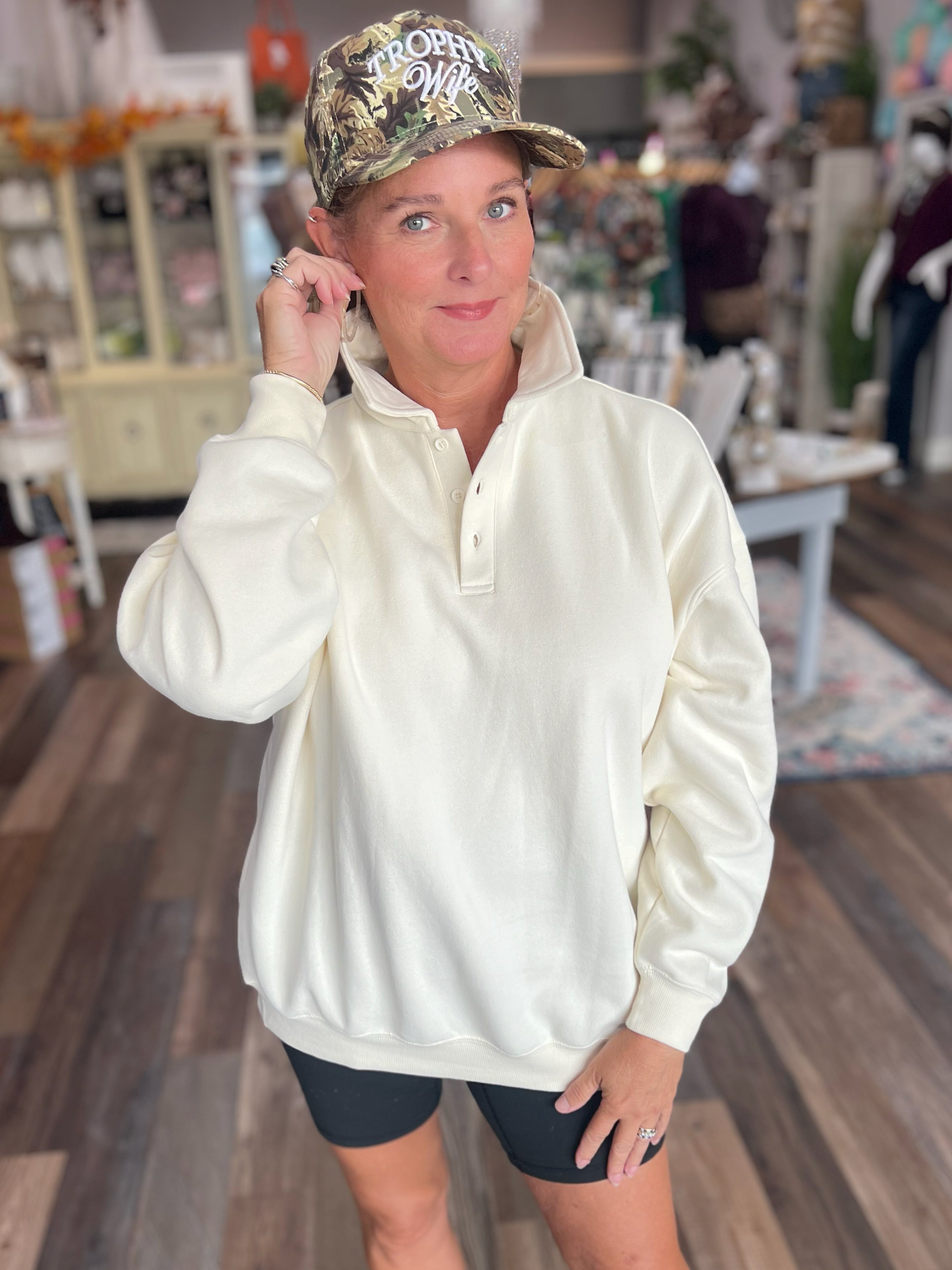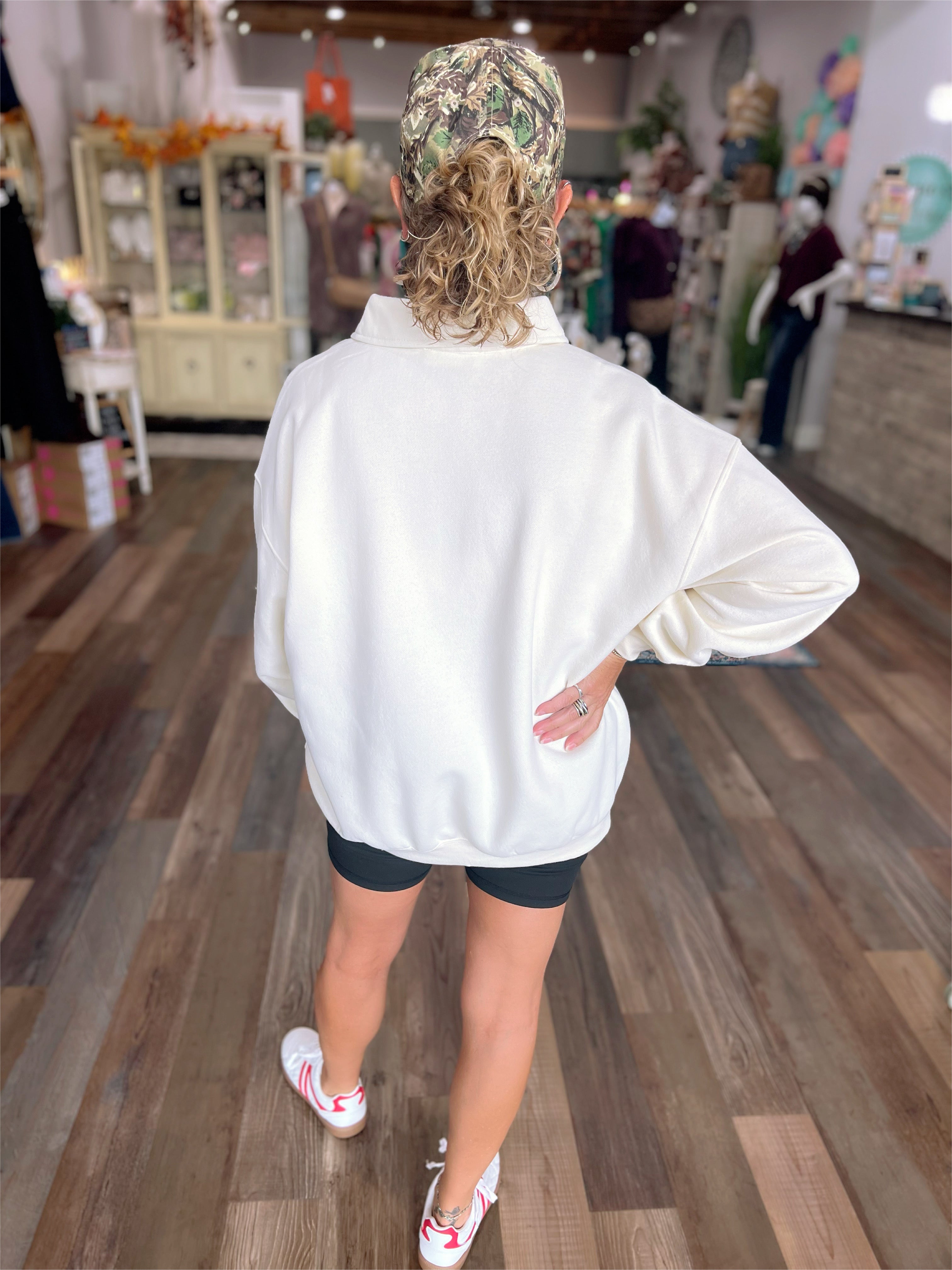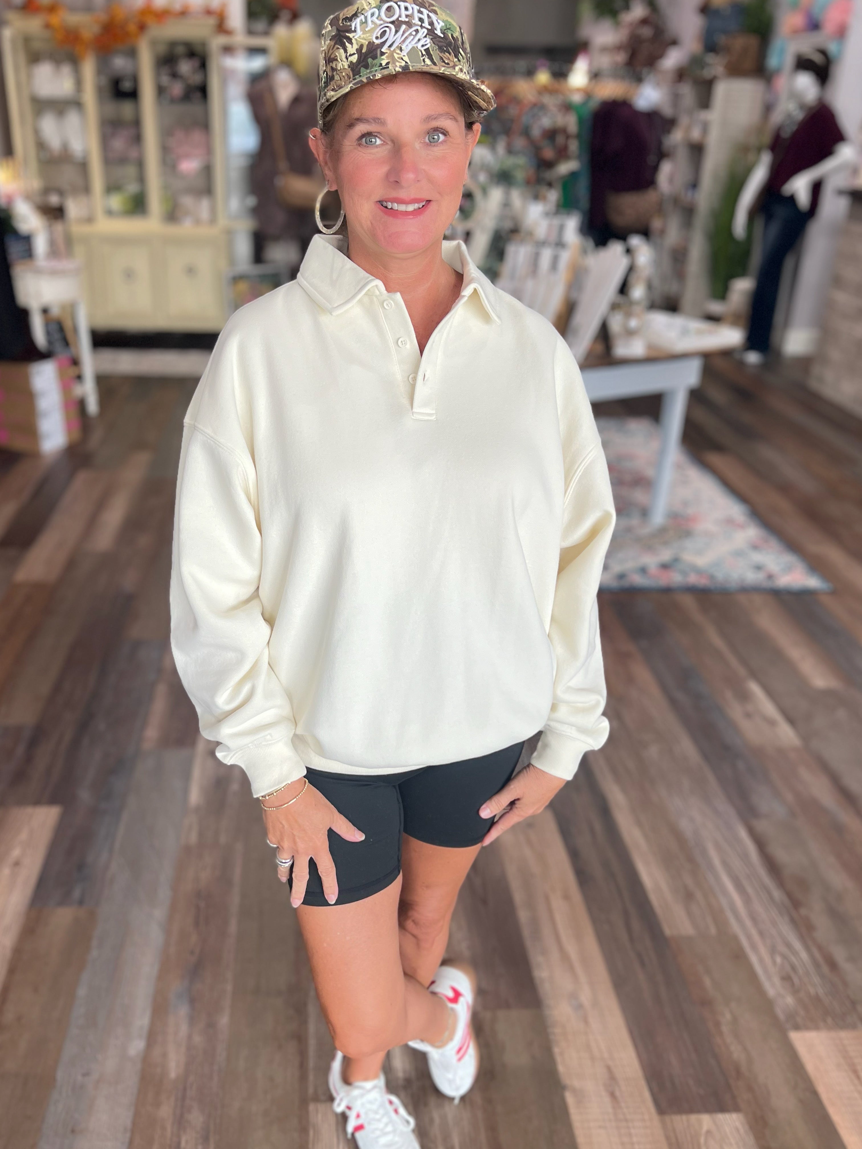 Elevate your casual wardrobe with our Oversized Polo Collared Pullover, available in bold red or classic cream. Crafted from a cozy cotton-blend fleece, this pullover combines relaxed comfort with polished details. The structured polo collar and ribbed cuffs give it a refined touch, while the oversized silhouette makes it perfect for layering or wearing solo.