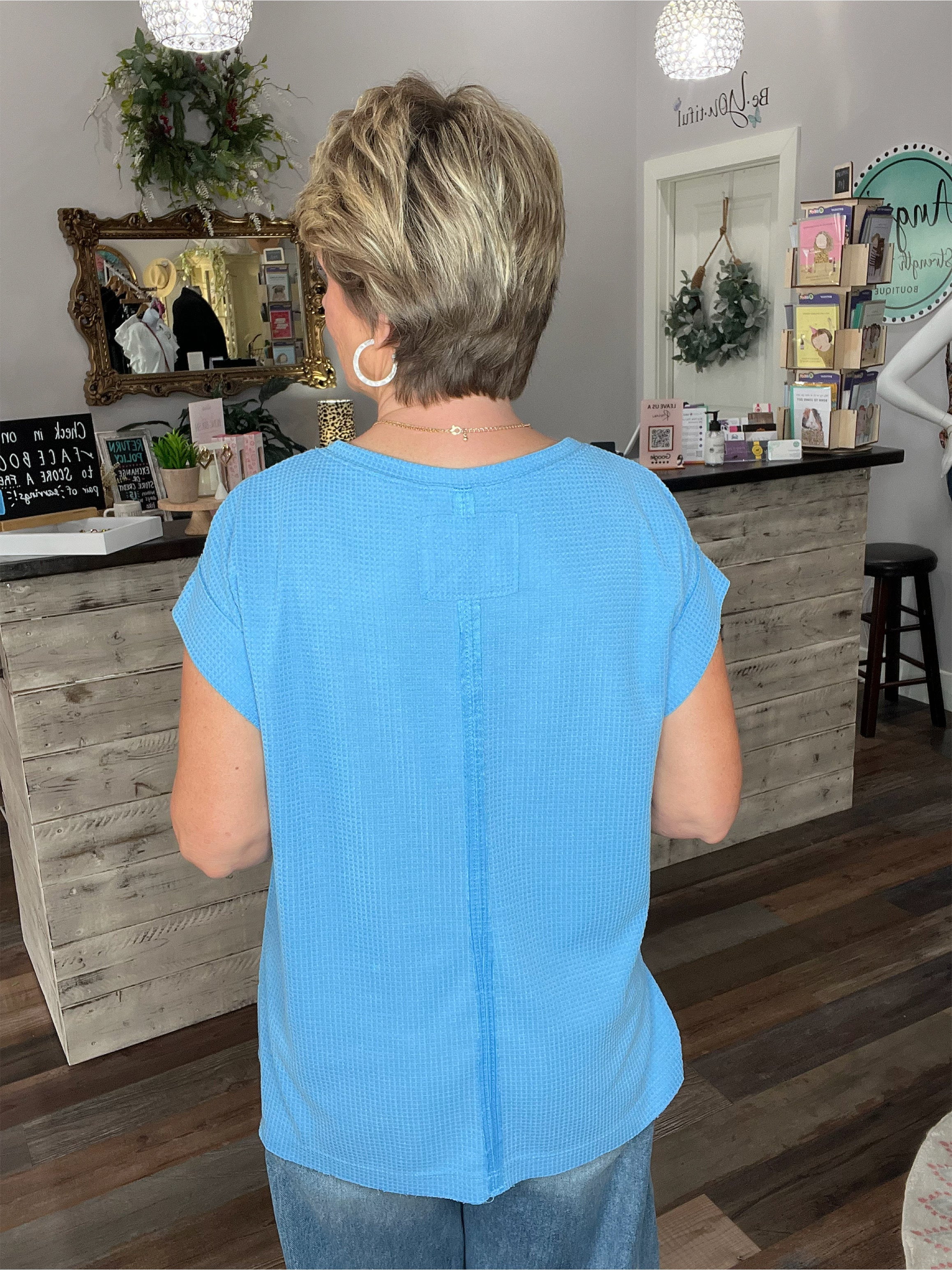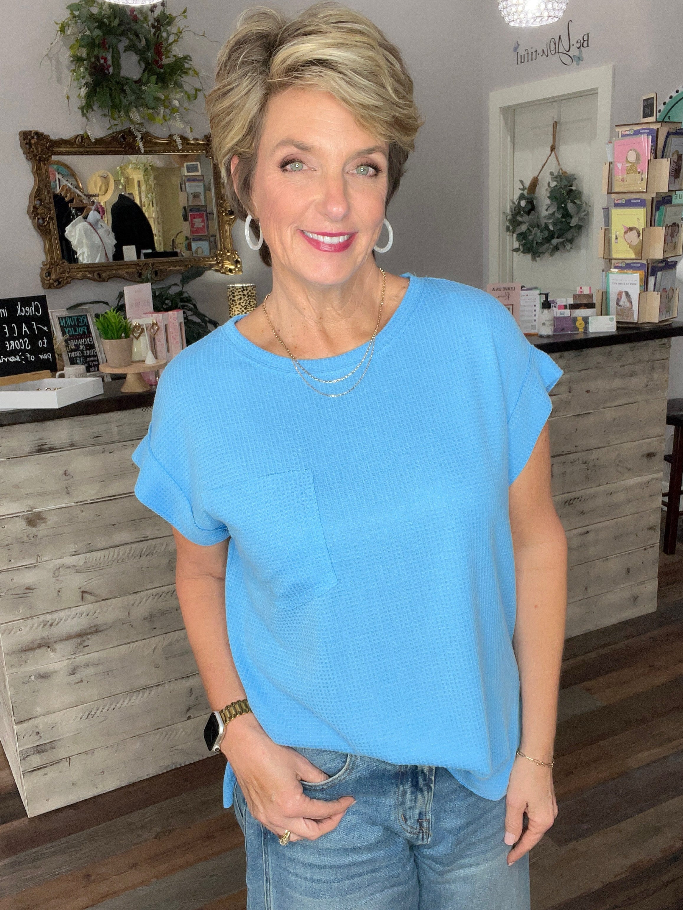 Effortless vibes meet style in this Cloud Blue Dolman Top—your new go-to for comfort that actually looks good. Flowy dolman sleeves, a cozy round neckline, and a practical pocket keep things functional. But here's the fun part: a surprise patch detail on the back adds that extra personality.