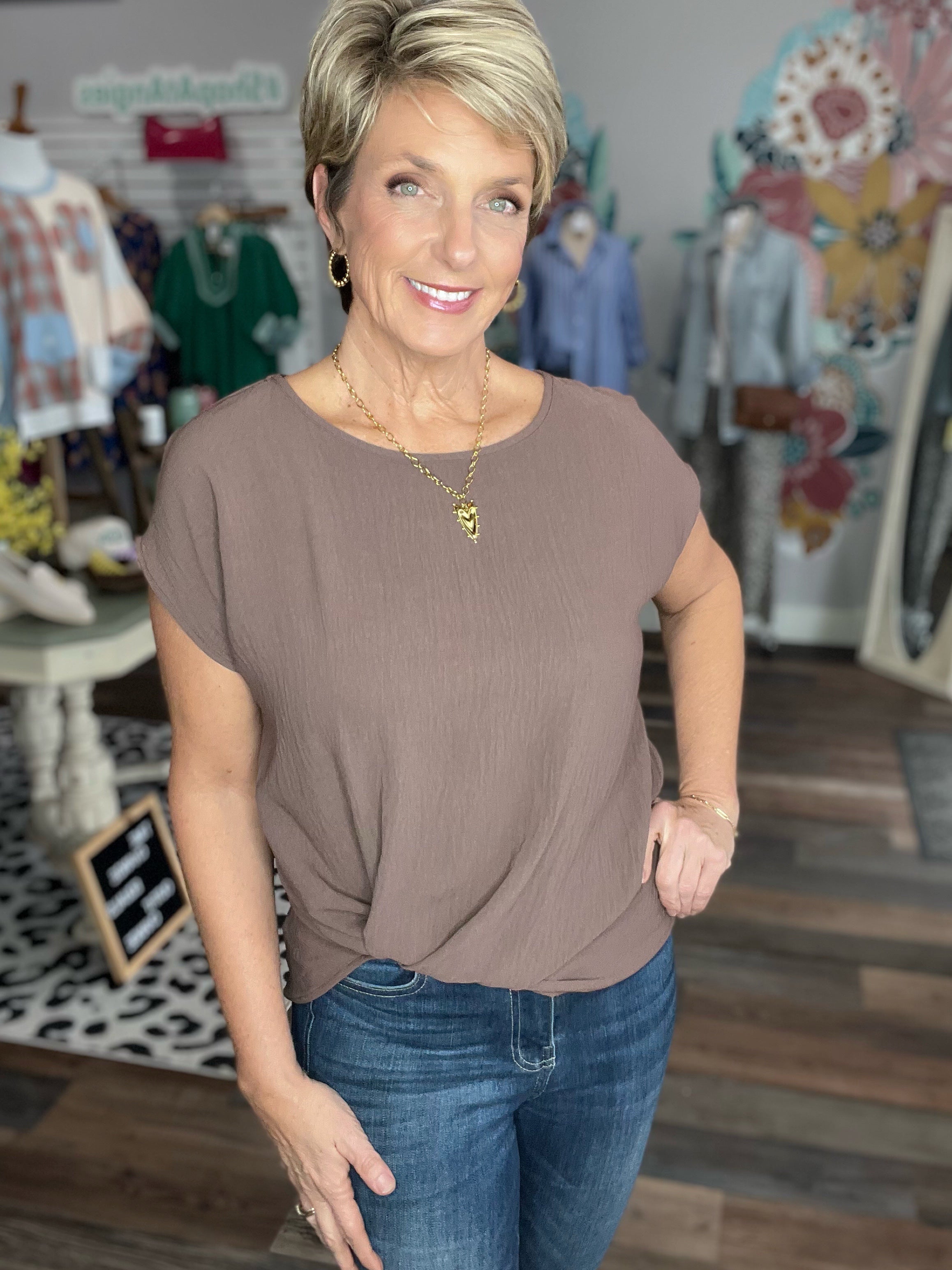 Simple, flattering, and easy to wear — this is the kind of top that makes getting dressed feel effortless. The Effortless Front Knot Blouse features a soft woven feel with a relaxed silhouette that drapes beautifully without clinging.