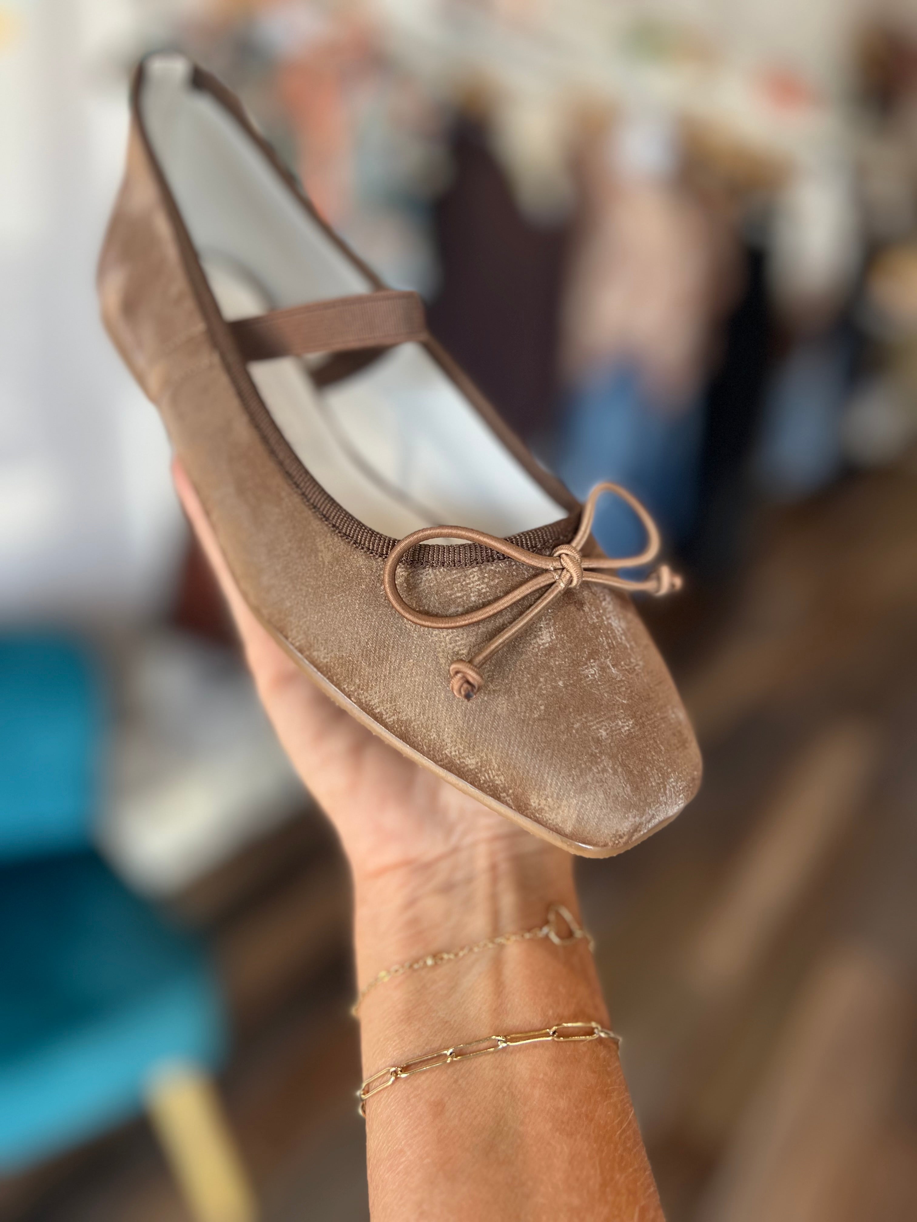 Chic, timeless, and effortlessly wearable — The London is your go-to ballet flat for every day. Crafted in a soft mocha velvet with a sweet bow detail and an elastic strap for a secure, flattering fit, these flats add instant polish to any look.