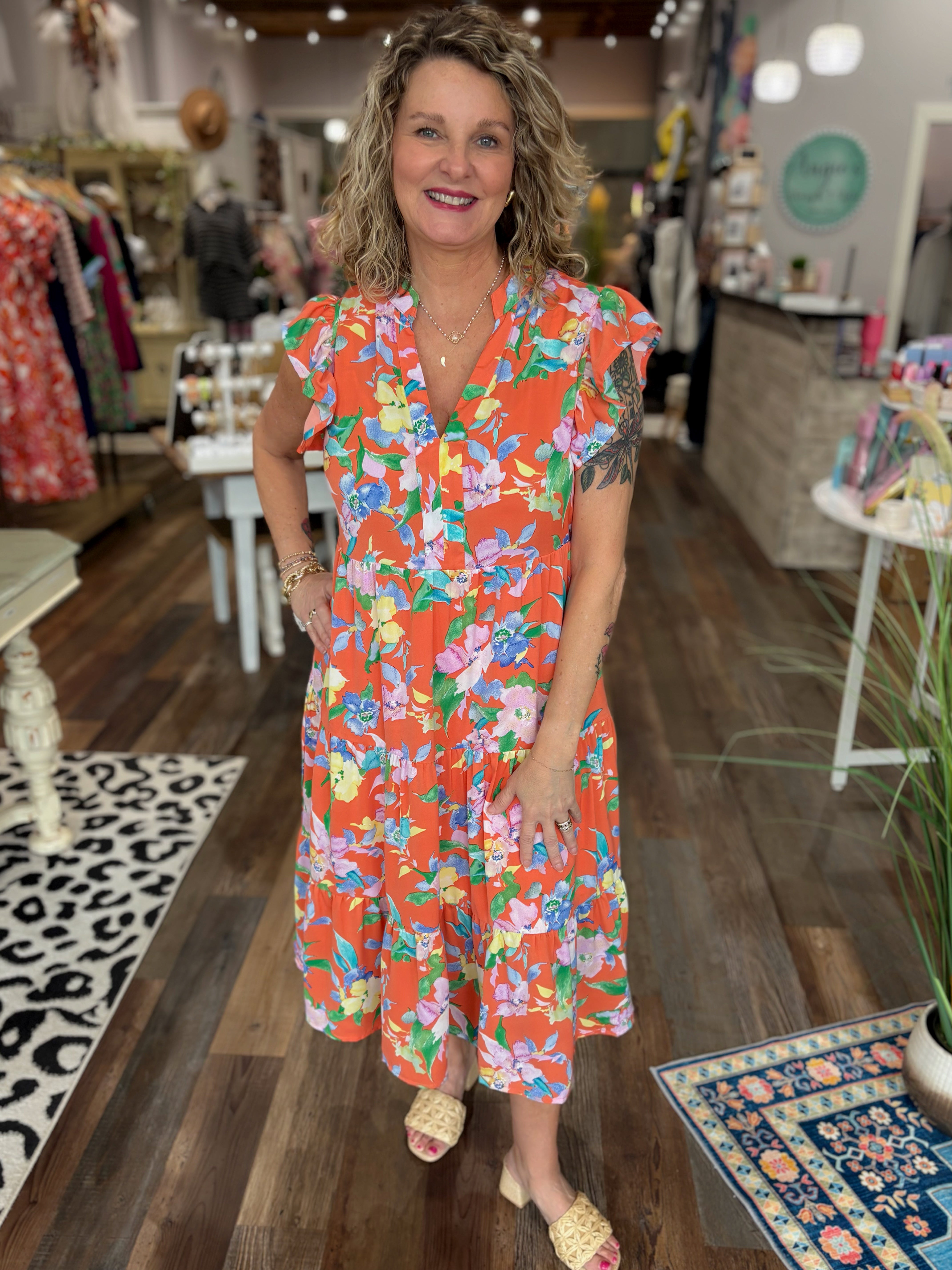 The Sweet Bloom Midi Dress is that effortless, feminine piece that works for so many moments in your life. With its soft floral print and easy, flowy fit, it gives you that put-together look without feeling overdressed or uncomfortable.