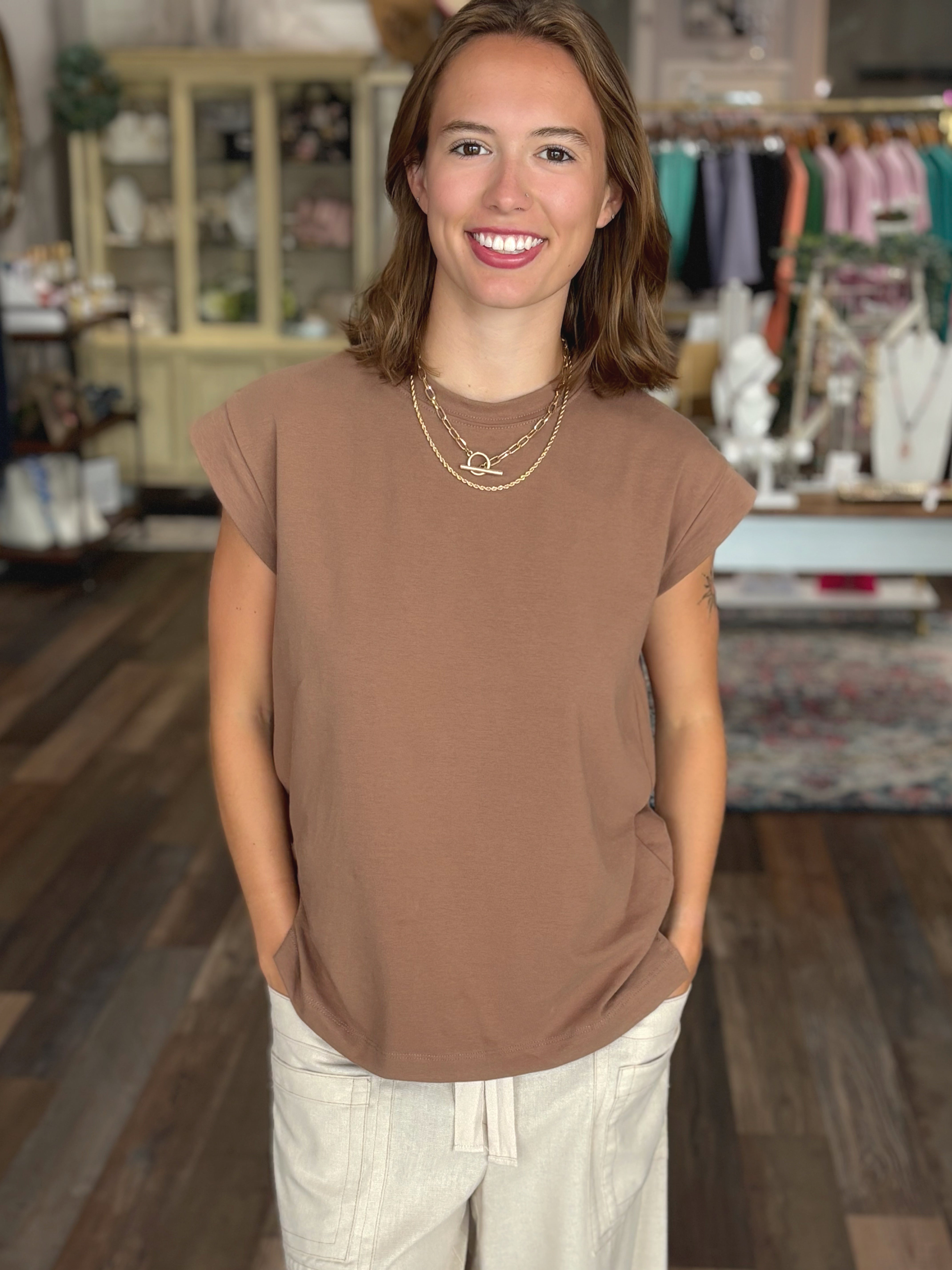 Simple, sleek, and so versatile—our Dark Mocha Knit Top is a wardrobe must-have. Designed with a structured rolled sleeve and crew neckline, this easy-fit top brings effortless polish to any casual outfit. The dark mocha hue is rich, flattering, and perfect for transitioning between seasons.