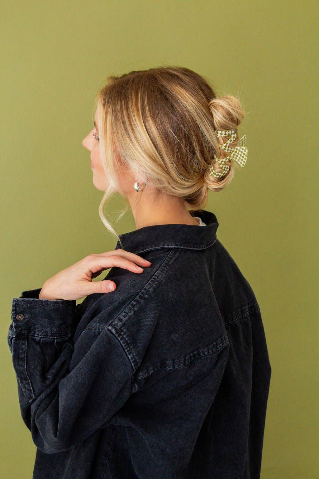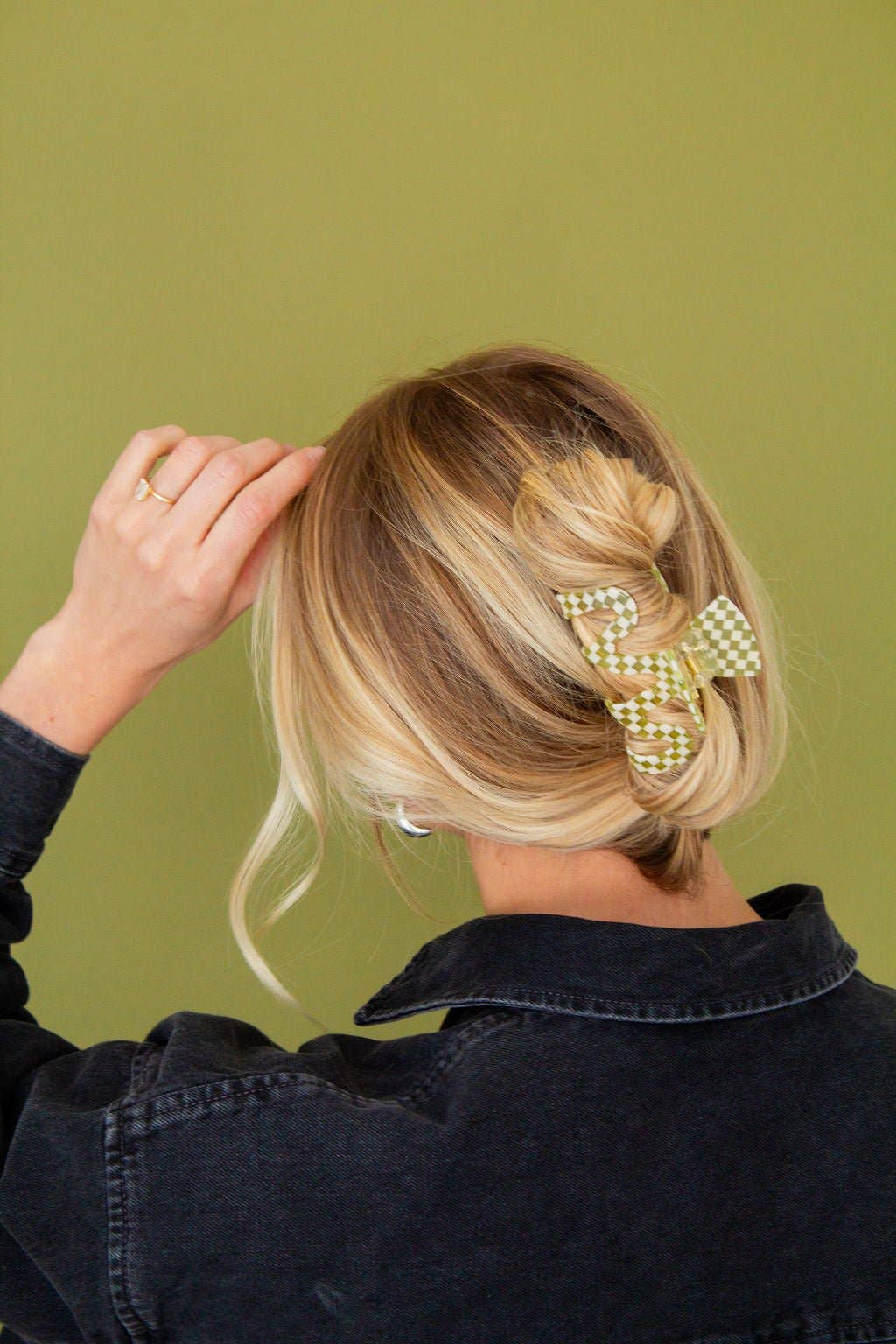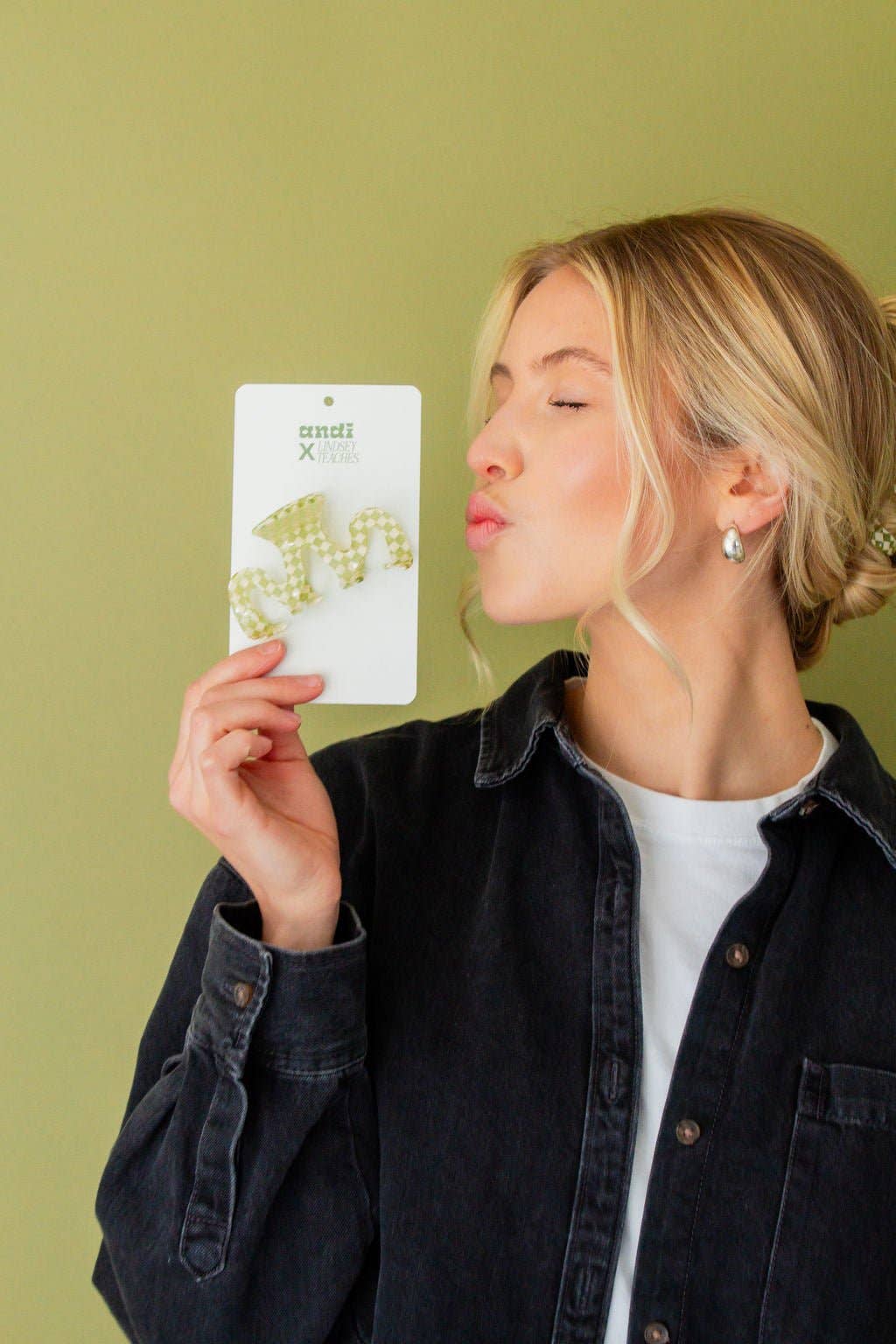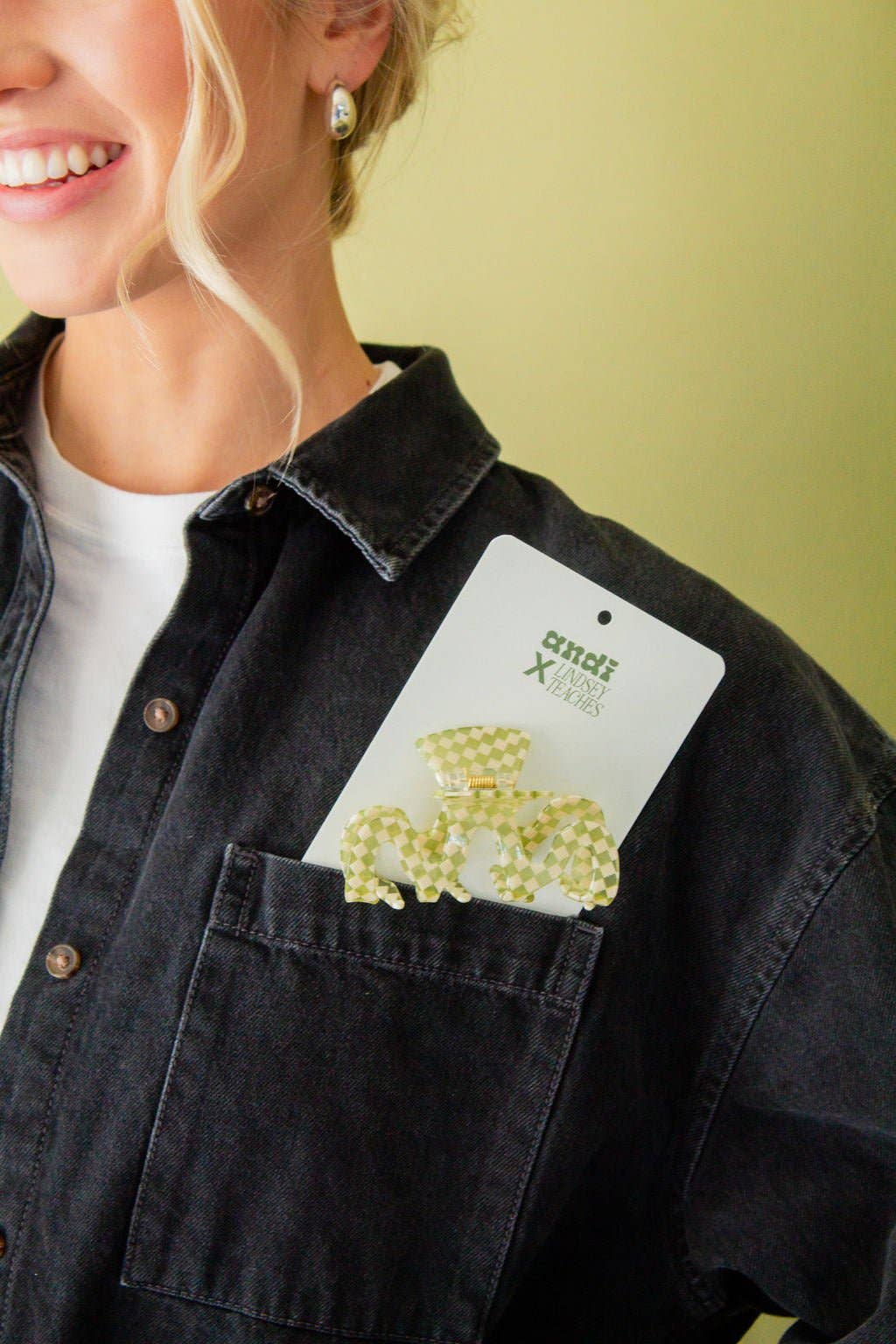 This claw clip is from our collab with Lindsey Teaches (@lindsey_teaches on instagram) and it is a must for your accessory bag! This claw clip is a cool squiggle shape that features a green and white checkered pattern. Pair this with your favorite sweats, date night dress, or work fit!