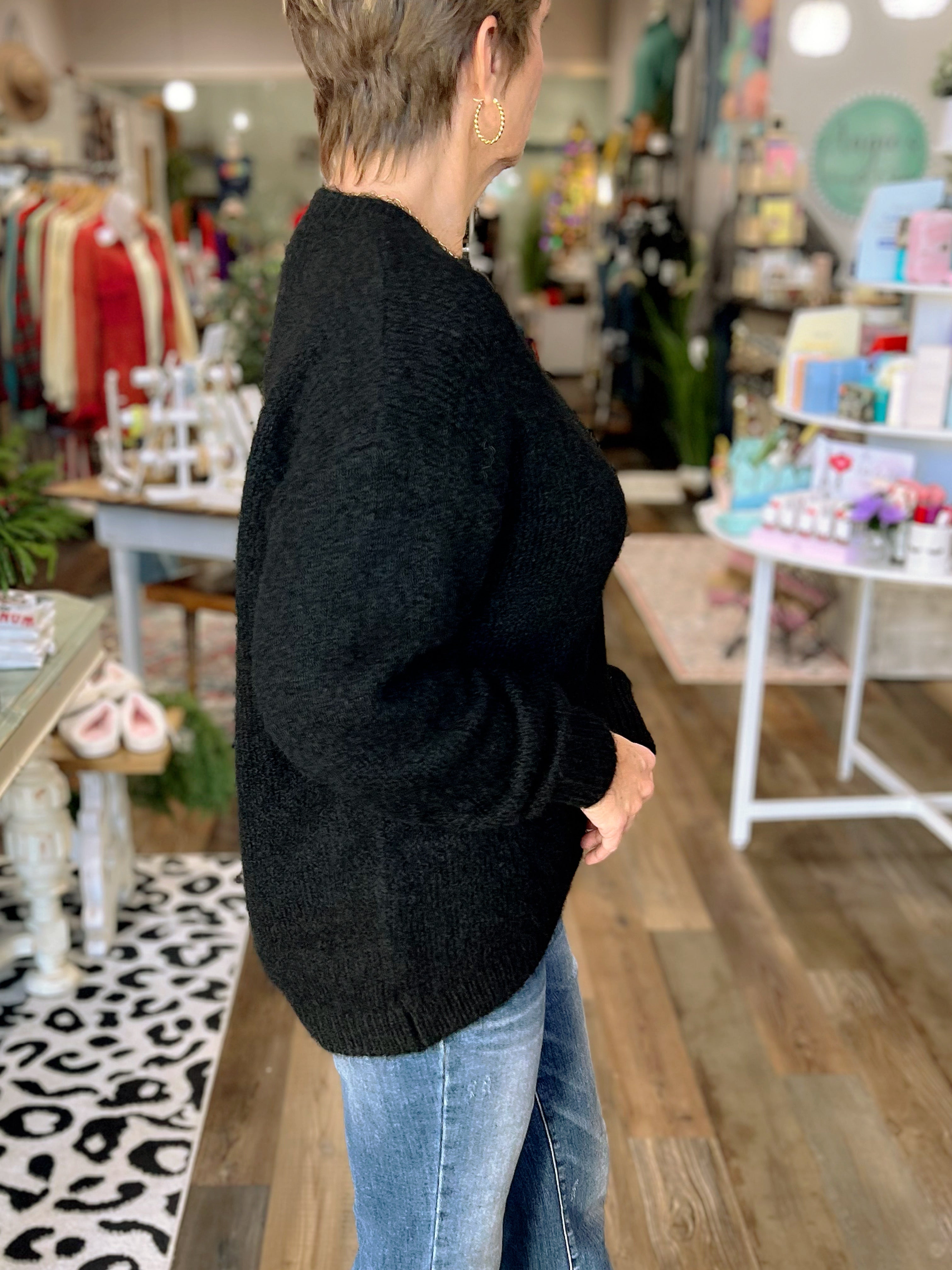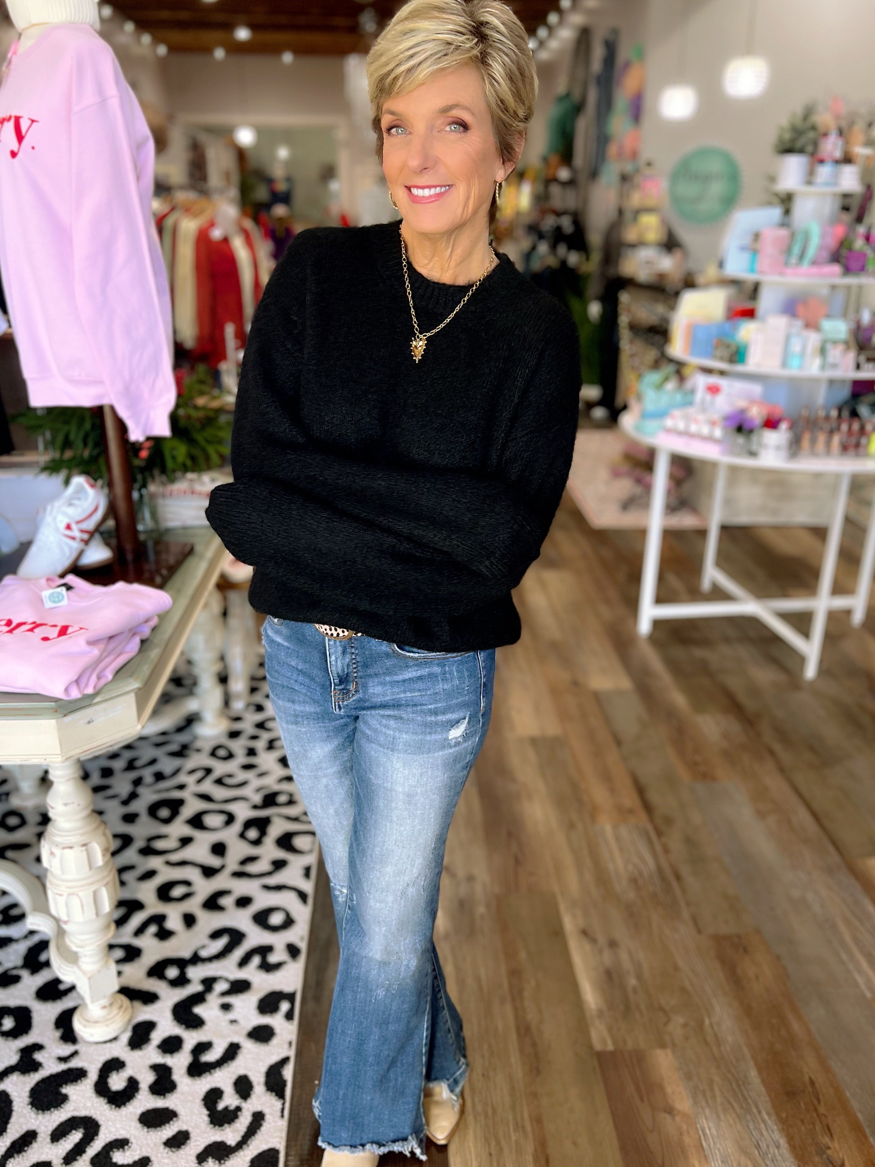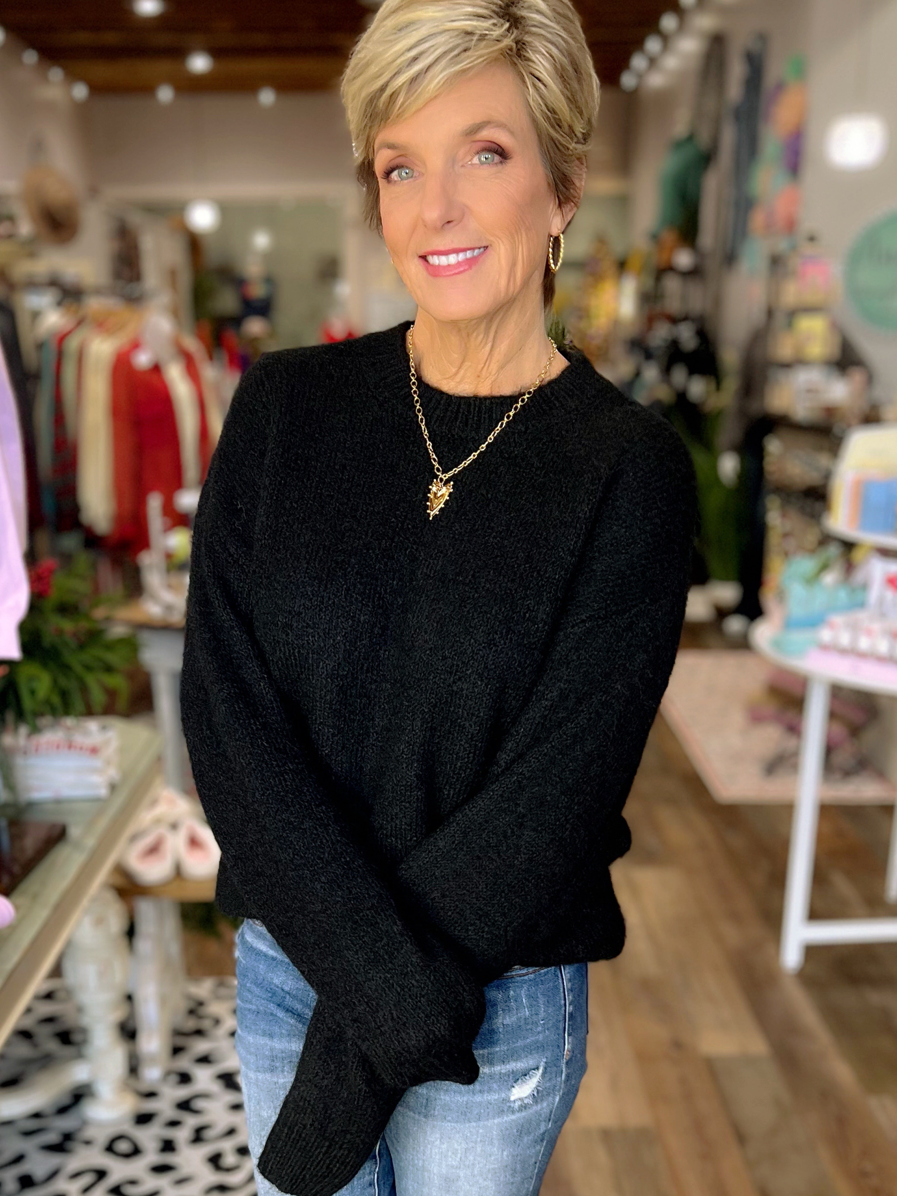 The Classic Crew Neck Sweater in Black has that soft, brushed texture we all love — cozy without being heavy, relaxed without looking sloppy. The easy crew neckline and classic silhouette make it a total layering MVP.
