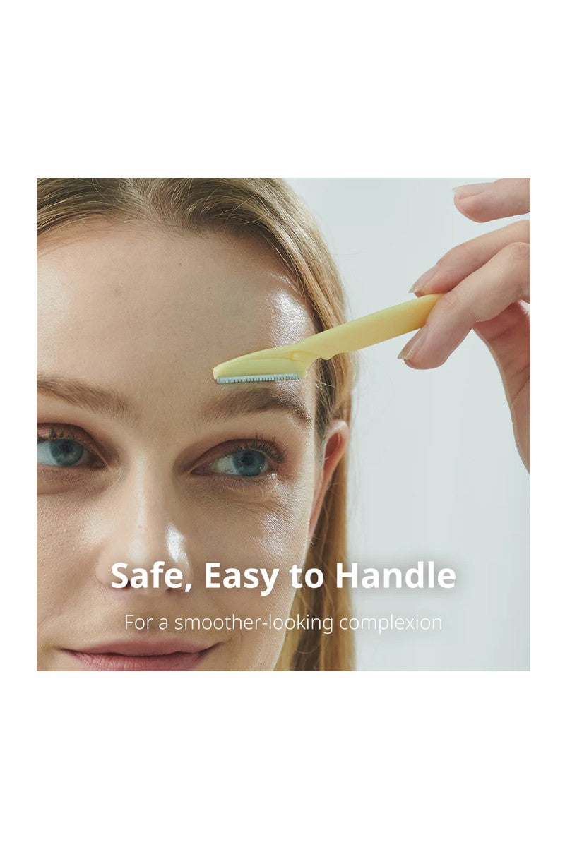 Removes fine hairs from eyebrows, neck, and face as well as unnecessary hairs elsewhere. Features a stainless steel cover attached to each blade to protect delicate and sensitive skin and prevent the blade from cutting too closely while shaving. 3 colored razors in set.