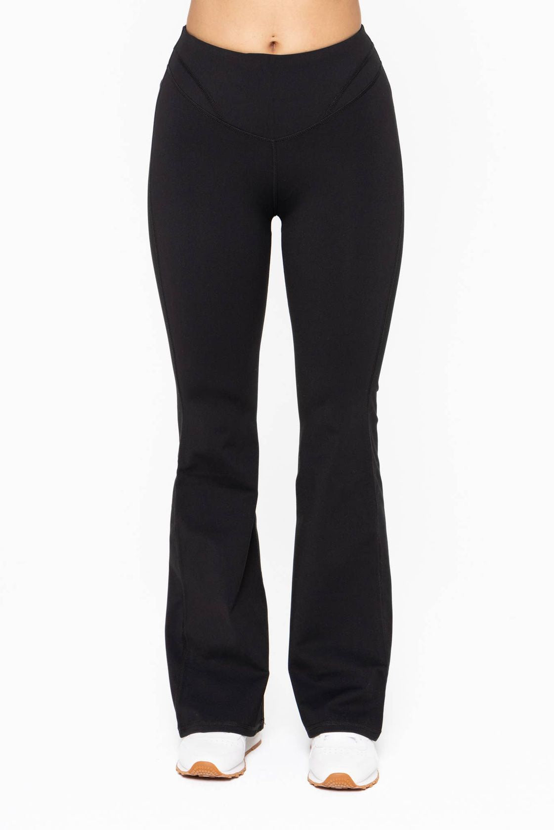 Step up your active wear game with our flare leggings. Crafted with a wide V-shape waistband both front and back, providing tummy control and accentuating your curves. Embrace comfort and style during your workouts. 75% recycle nylon 25% spandex Made in China