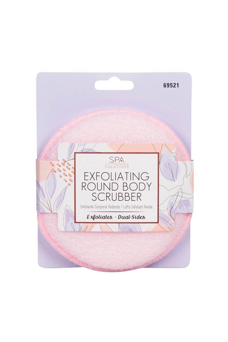 The Pink Exfoliating Round Body Scrubber gently removes layers of dead skin, revealing a renewed and radiant complexion. It effectively cleanses and exfoliates, leaving pores unclogged and skin deeply rejuvenated.