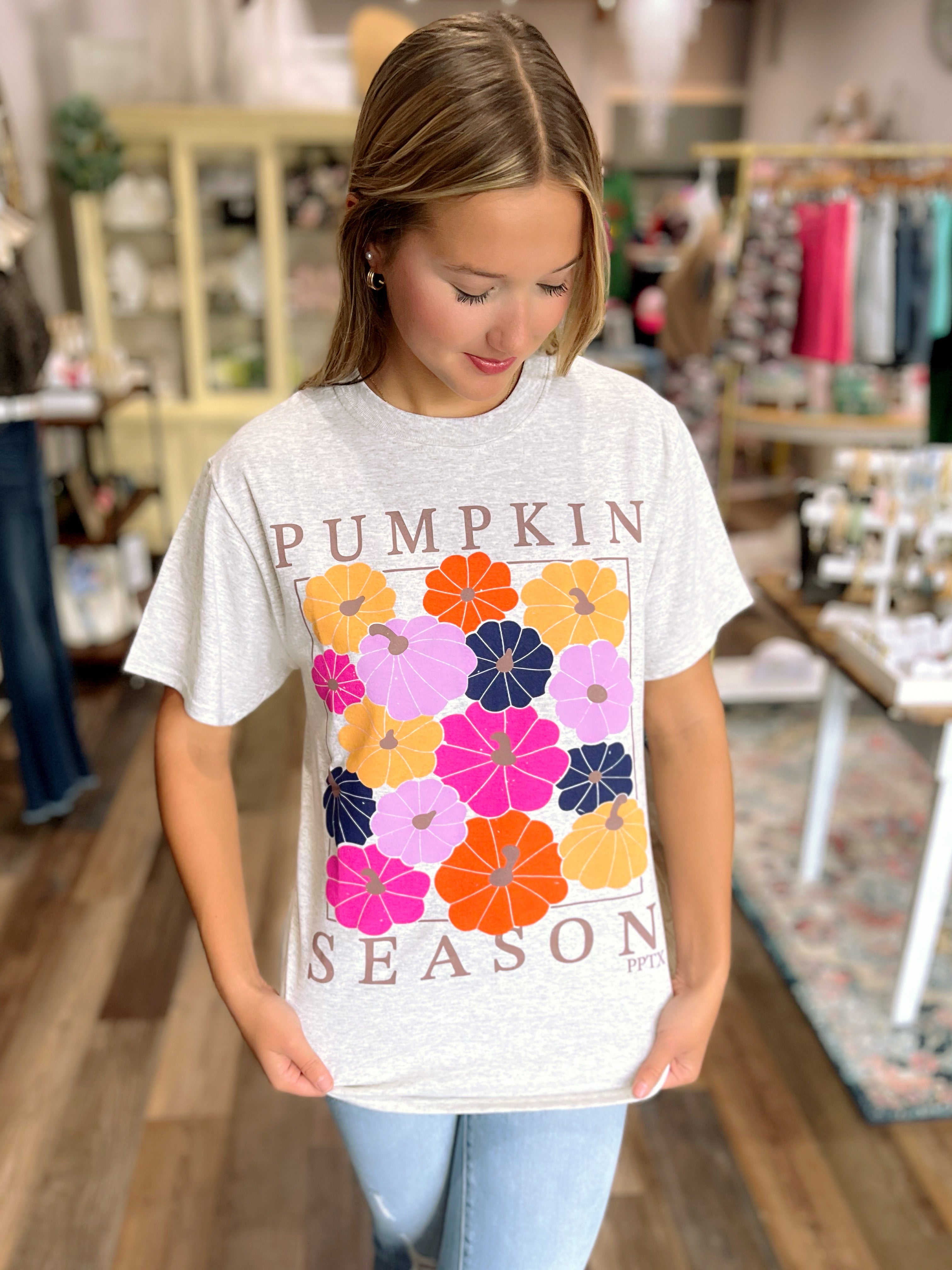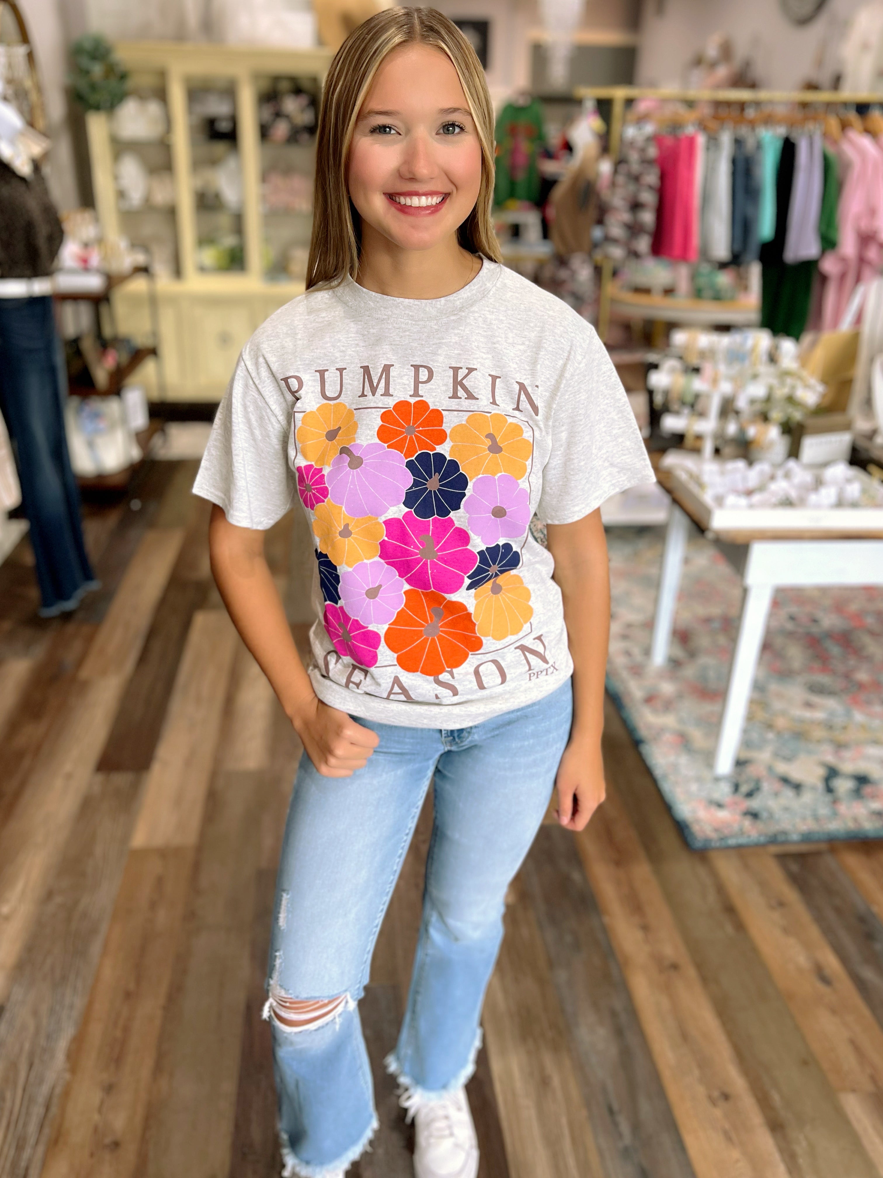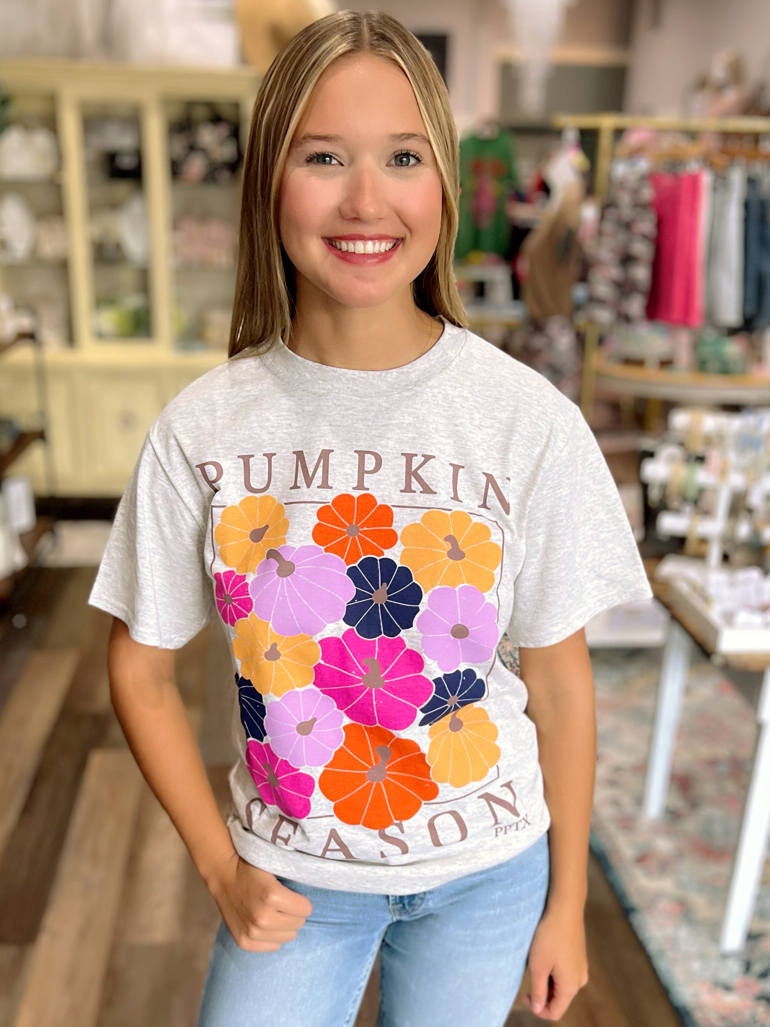 Celebrate cozy fall vibes with our Pumpkin Season tee! Bursting with colorful pumpkins, it’s perfect for fireside chats and rainy day snuggles. Embrace autumn in style and comfort!